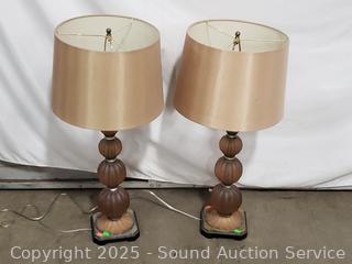 Scalloped sphere accents. Both are missing the switch knobs, otherwise appear to be functioning as intended.