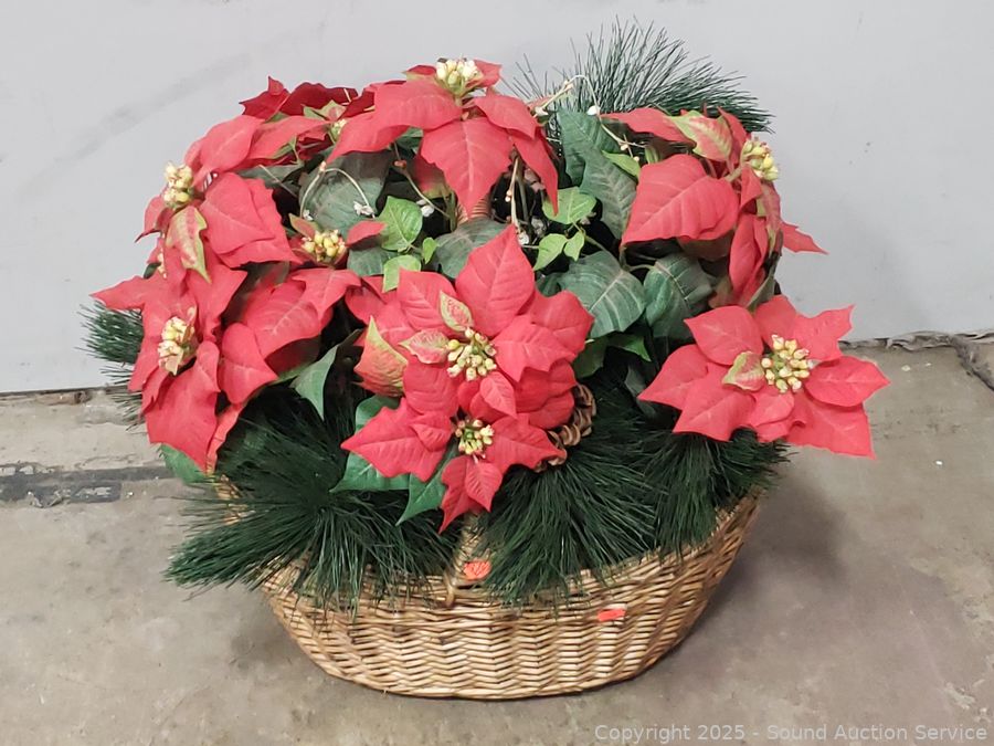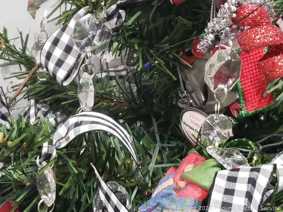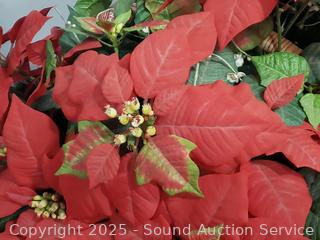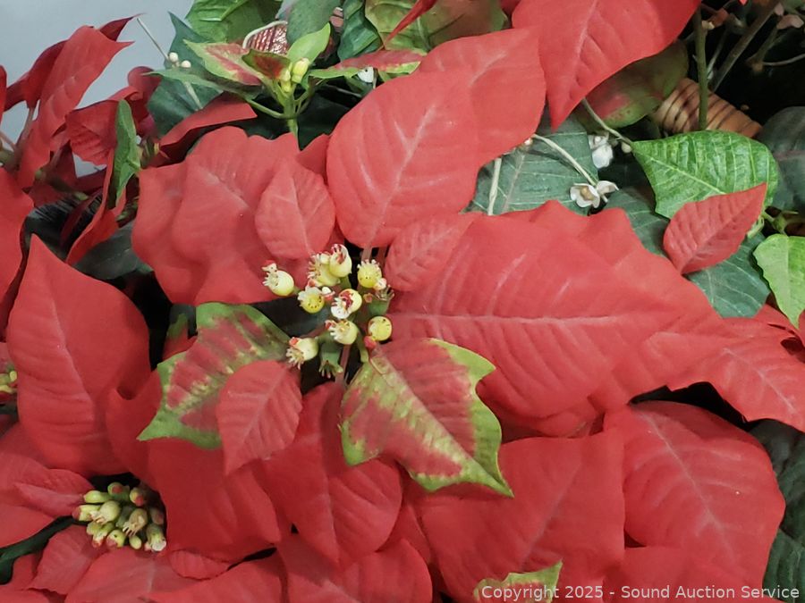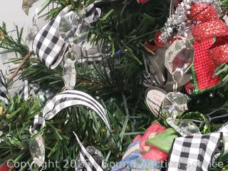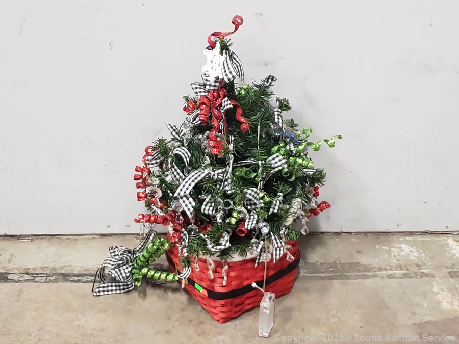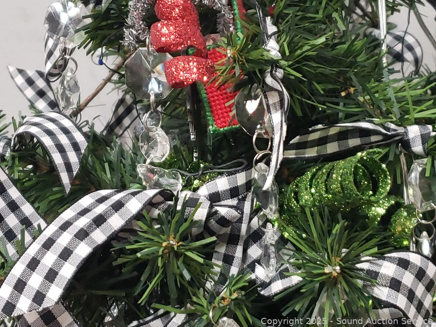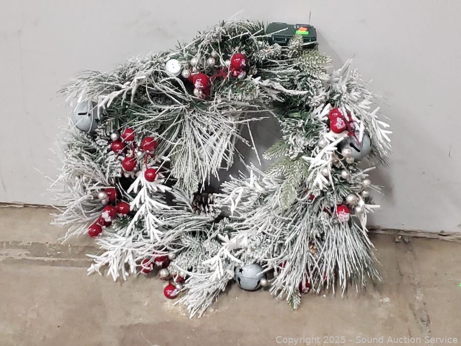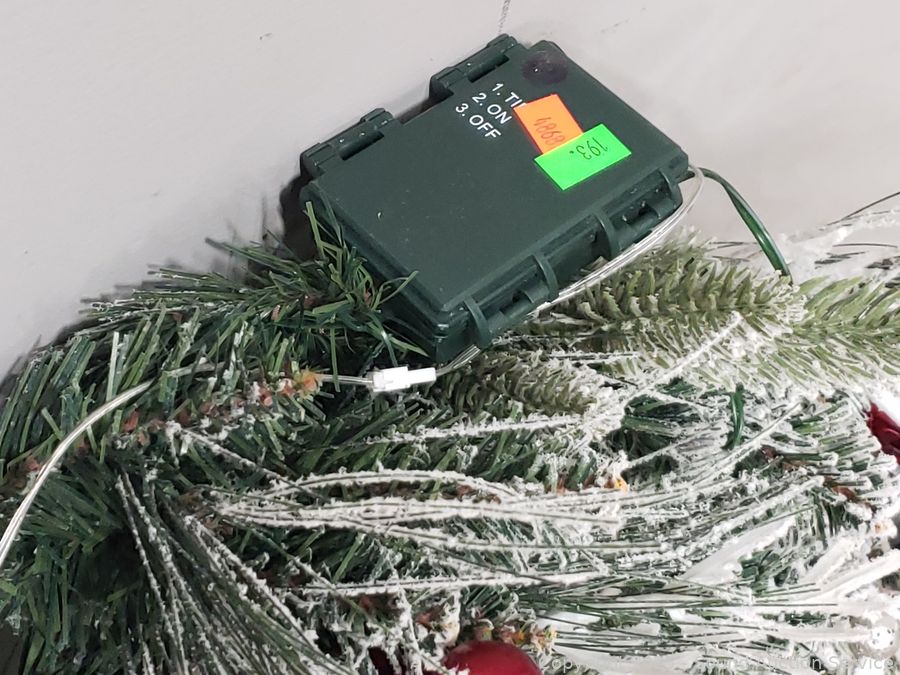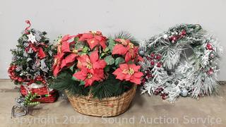 Lot #0193: 16" Wreath, 24" Lighted Tree Decor, Faux Holly Plant Decor