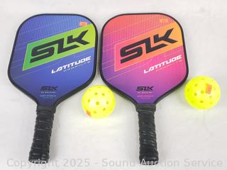 Lot #0107: 2 SLK Latitude Pickleball Paddles & 2 Balls