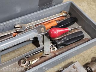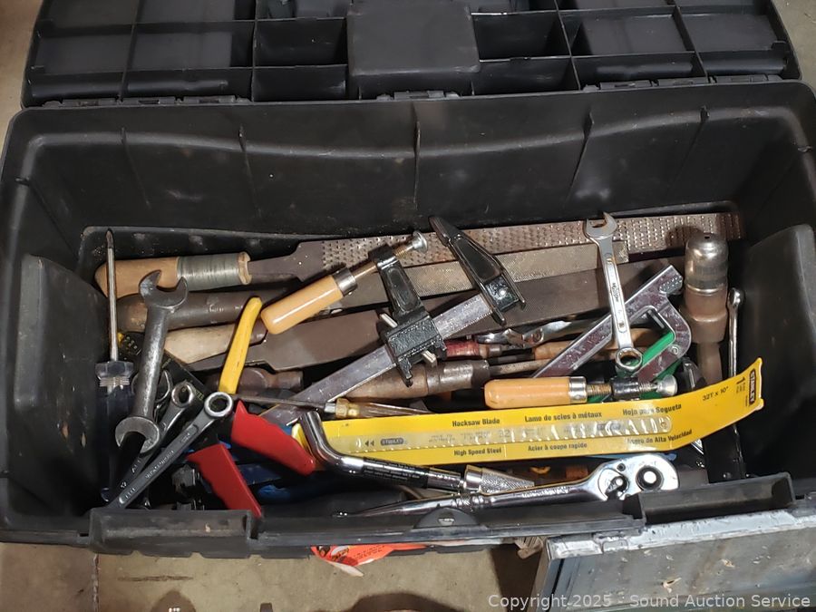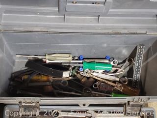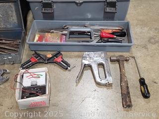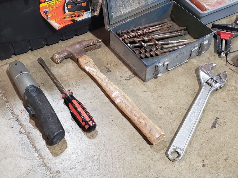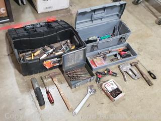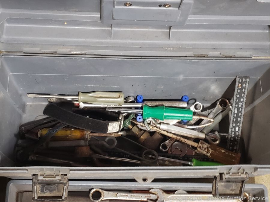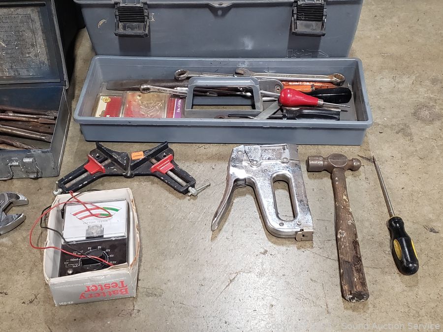 20" & 22" toolboxes. Wrenches, screwdrivers, turnbuckles, ratchets, multimeter, auger bits, etc. Refer to photos for lot contents, more details.