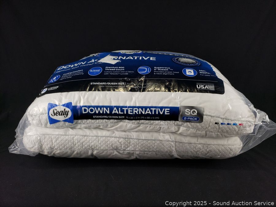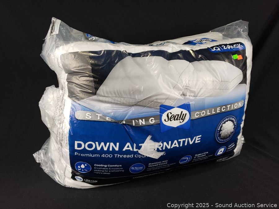Lot #0058: 2pk Sealy Down Alternative 400TC S/Q Pillows