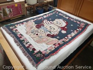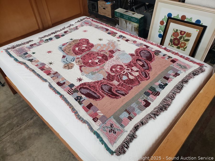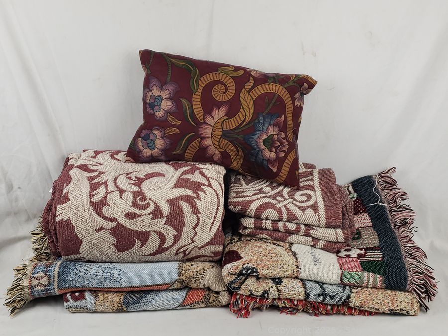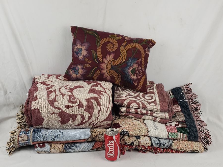 Lot #0183: 3pc King Coverlet Set, 2 Throw Blankets & Pillow