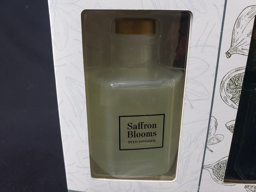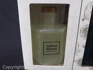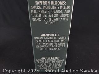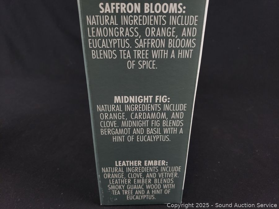 Saffron Blooms, Midnight Fig, Leather Ember scents.