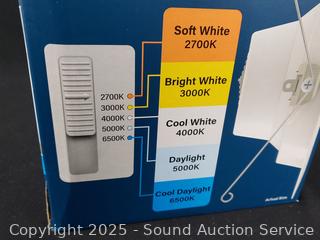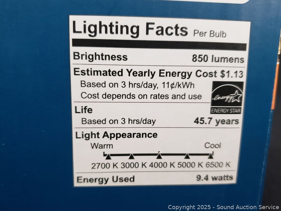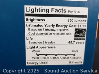 850LM, 9.4W, 2700K-6500K. One is missing hardware for tension spring.