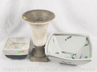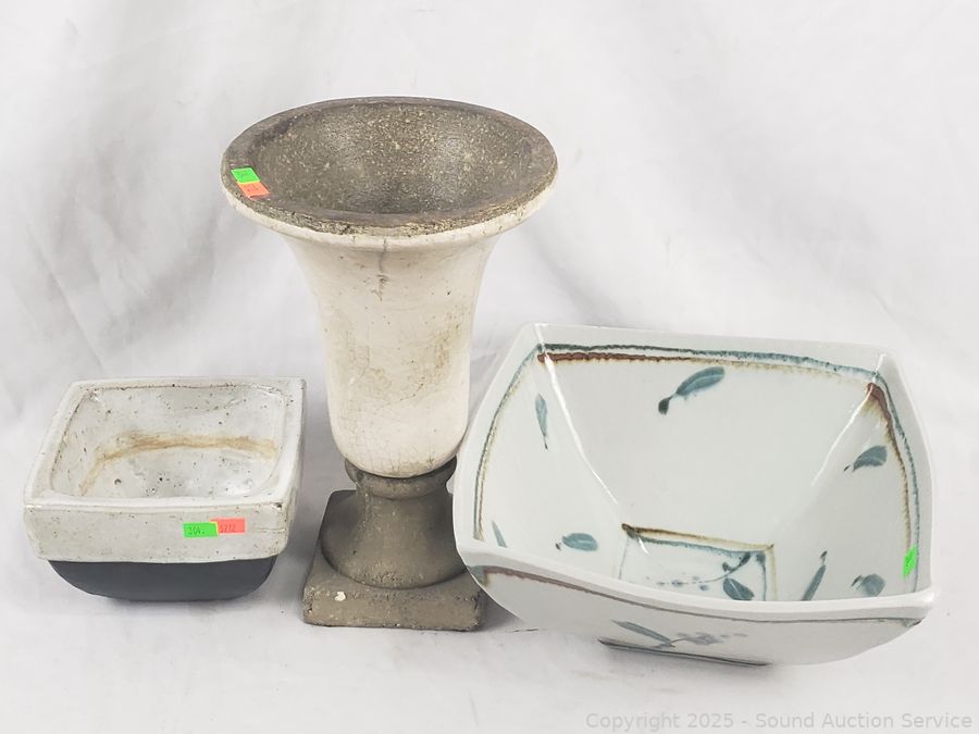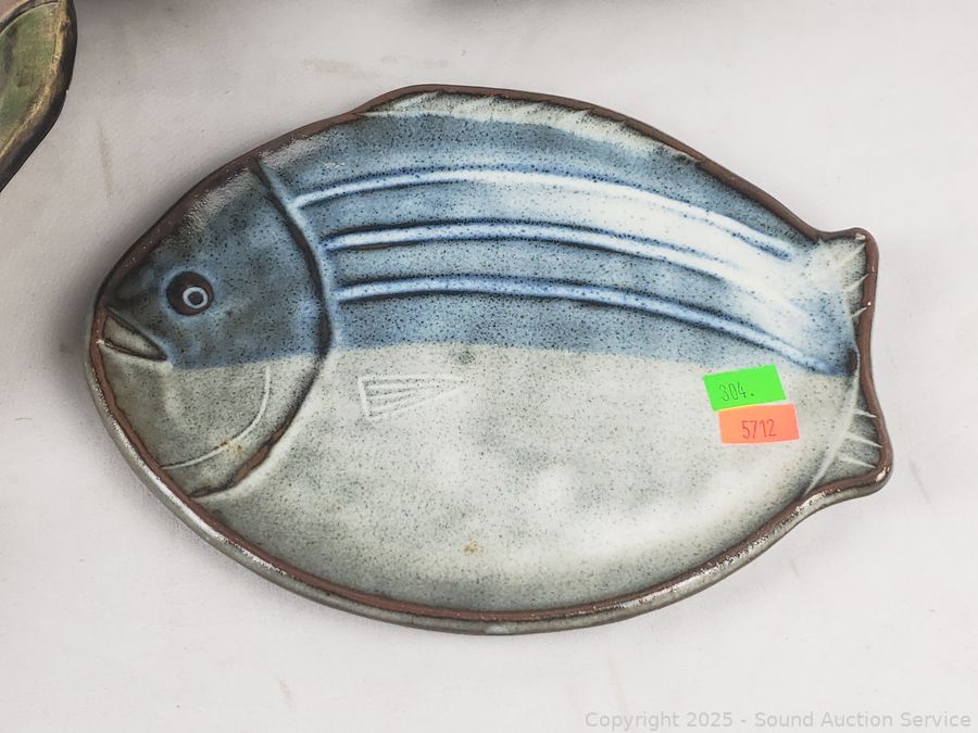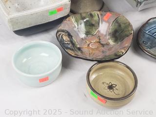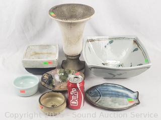 11" Center bowl, 12" vase, small bowl, fish dish, 4" to 6.5" dishes. Refer to photos for more details.