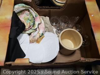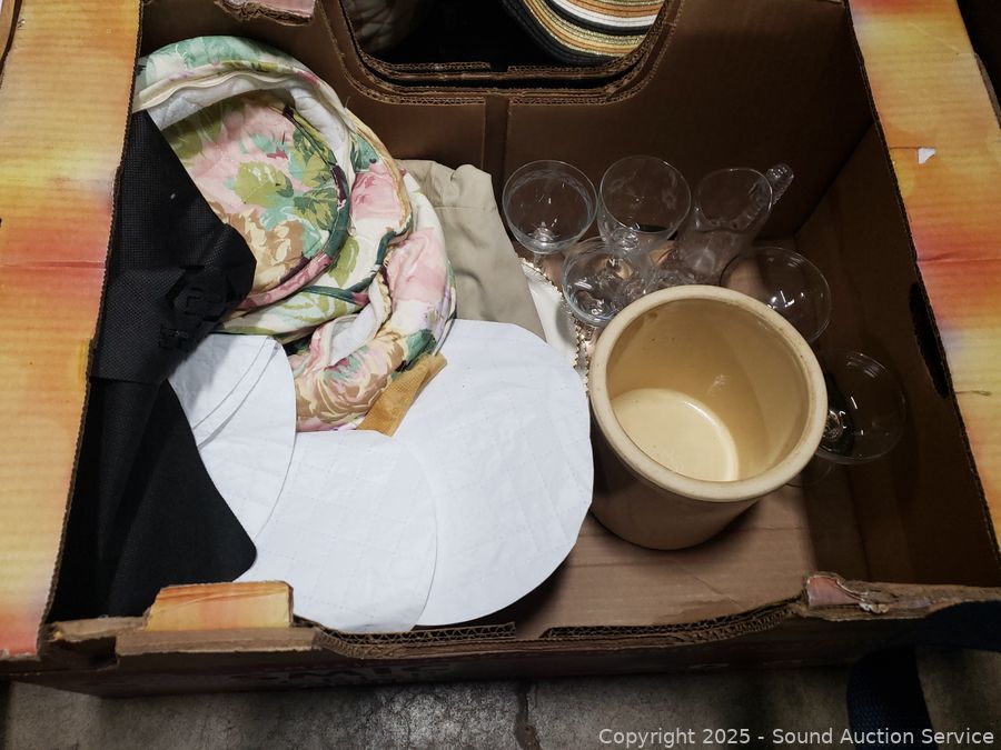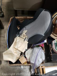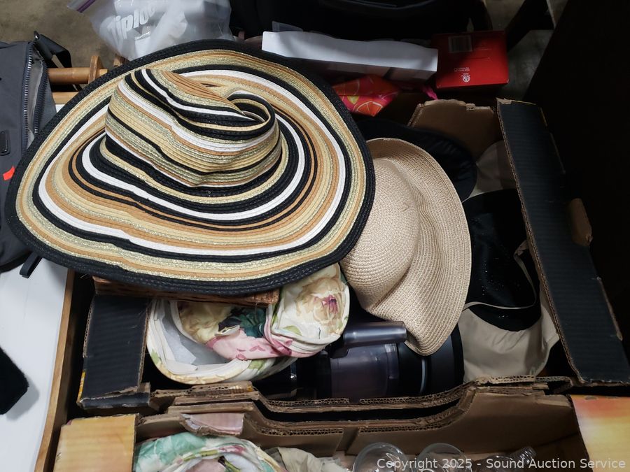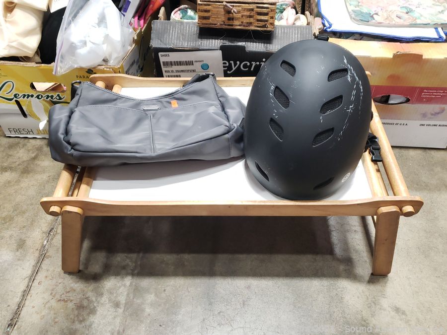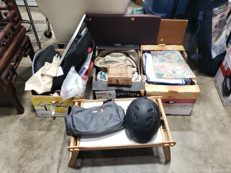 Sports helmet, felt table covers, lap tray, pill box, hats, Ninja Ice Cream Maker, steam ware, china bags, etc. Refer to photos for lot contents, more details.