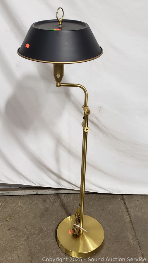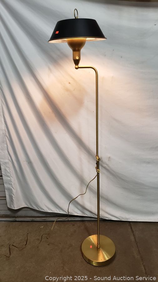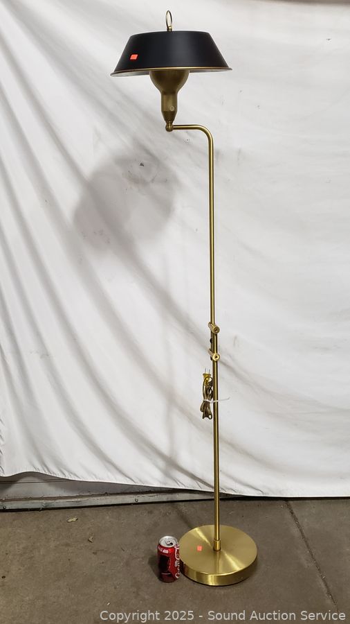 Lot #0053: Brass Adjustable Height Floor Lamp w/Black Shade