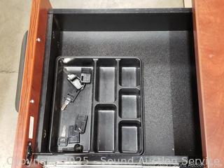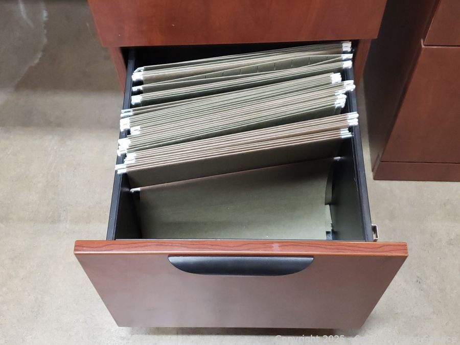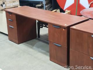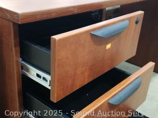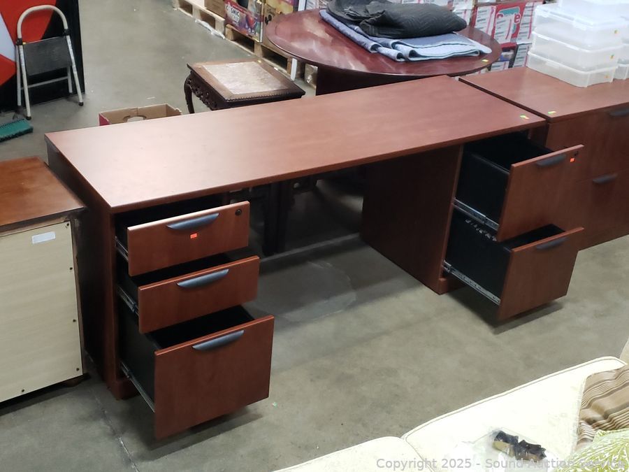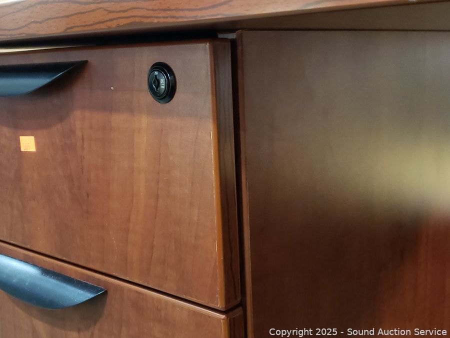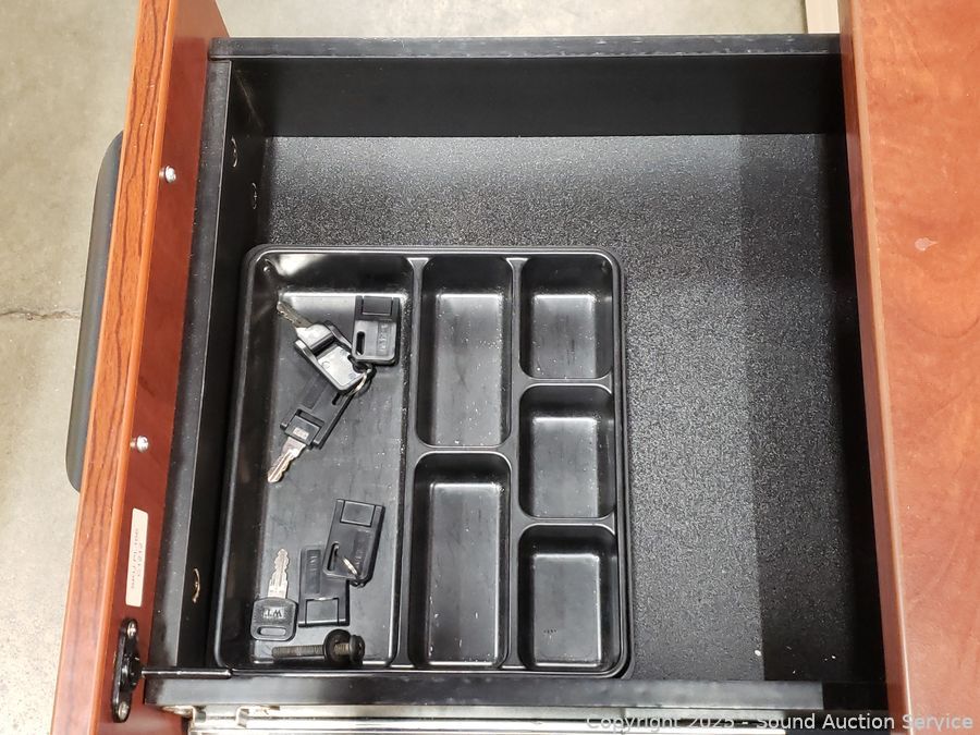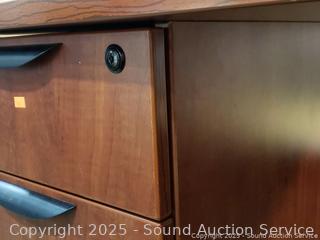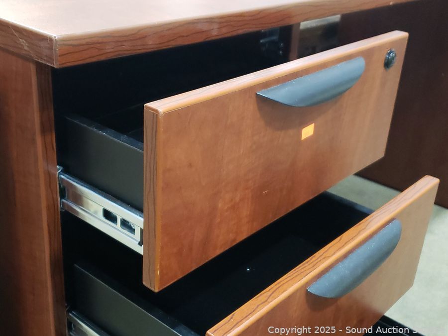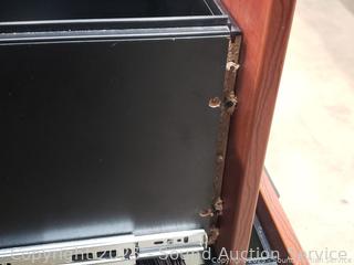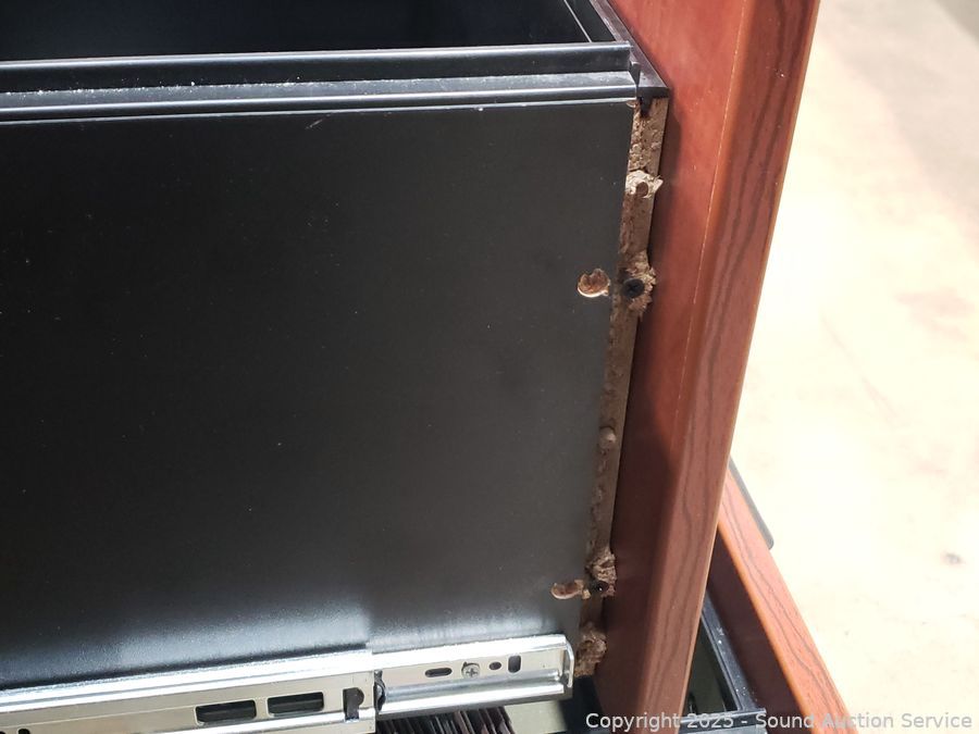 Top not attached, no hardware, right drawer is damaged, front panel is broken from side panel. Overall great cosmetic condition. Locking with keys, ball bearing drawer guides. 29" H x 72" W x 23.75" D.