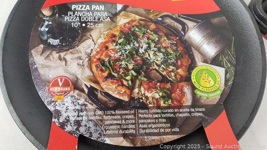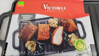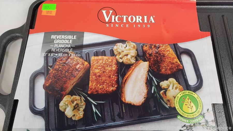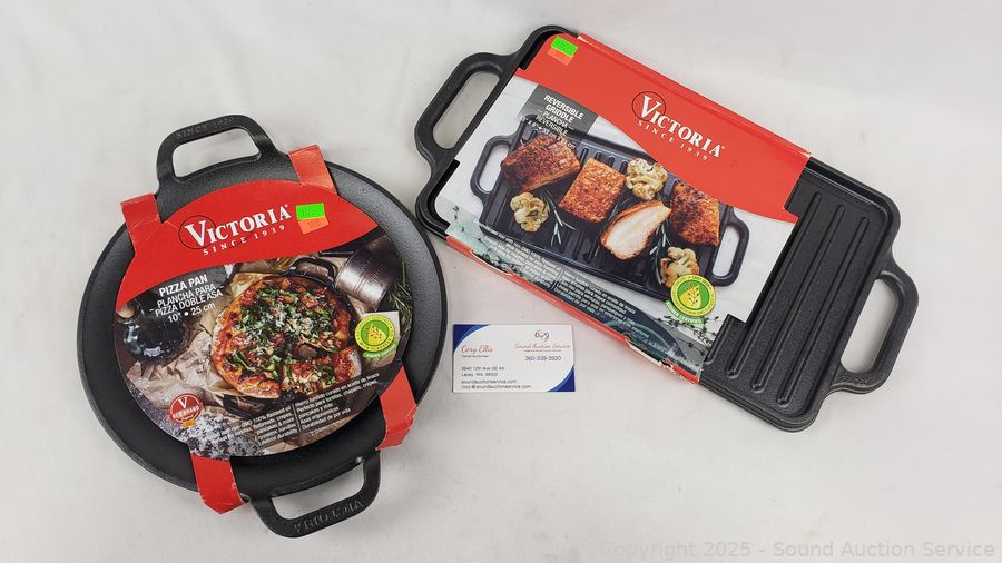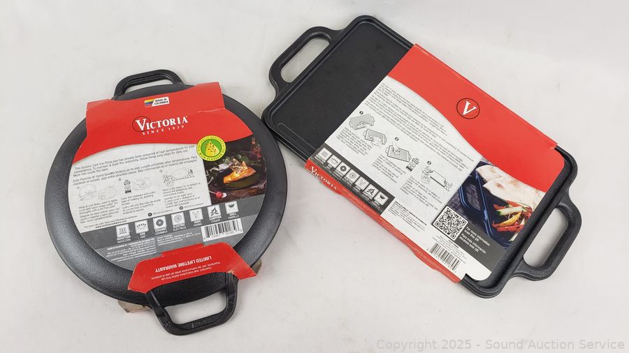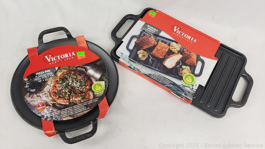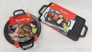 Lot #0177: Victoria Cast Iron 10" Pizza Pan & 8x13" Reversible Griddle