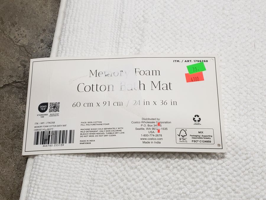 Lot #0073: White Cotton Memory Foam Bath Mat