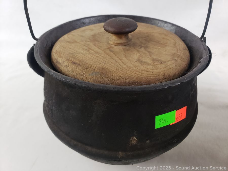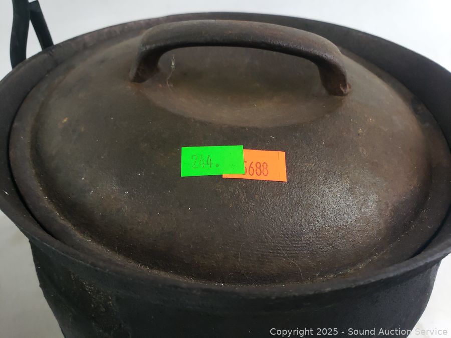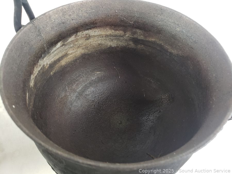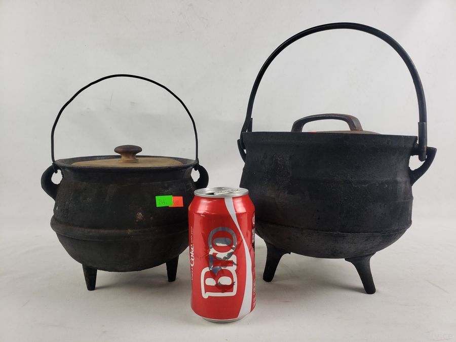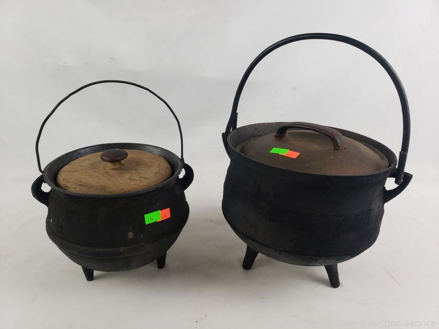 Lot #0244: 2 Footed Cast-Iron Cauldrons w/Lids