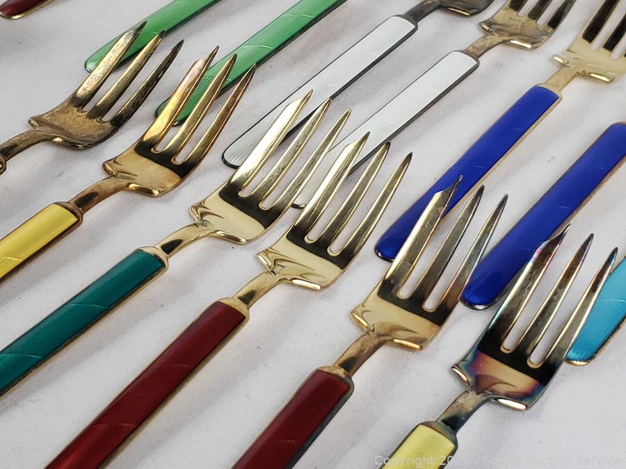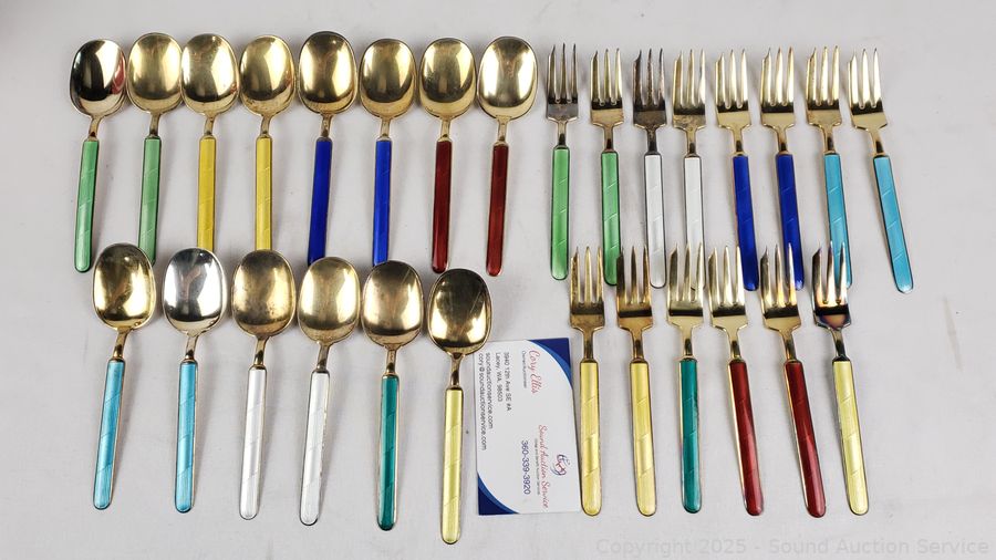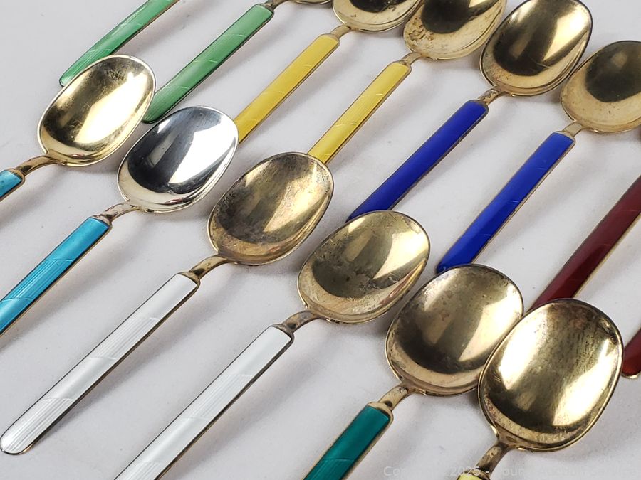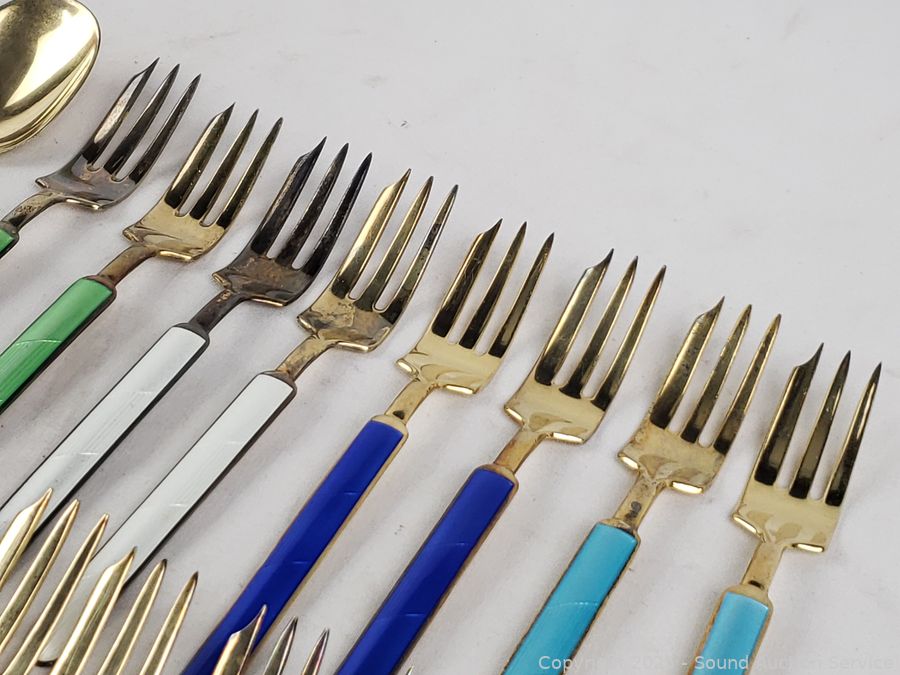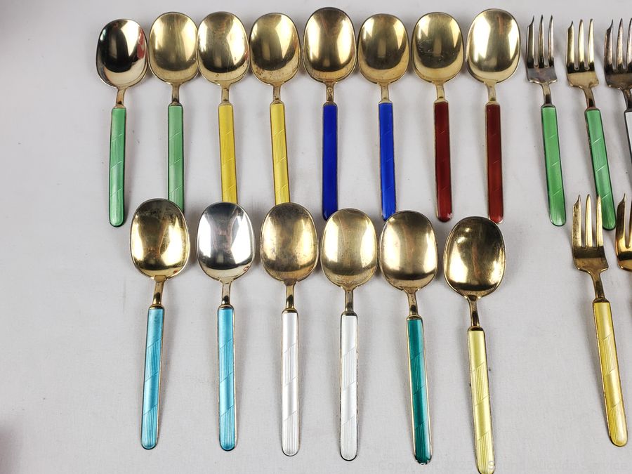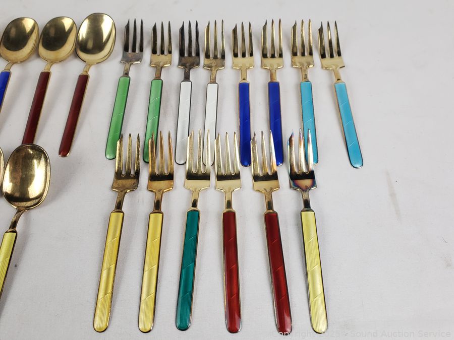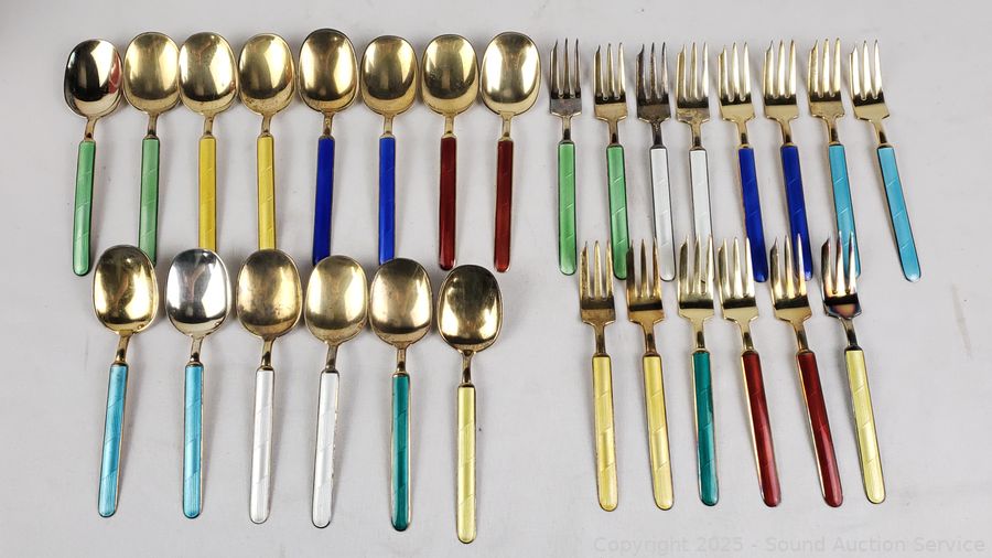 Lot #0087: 28pc Norway Sterling Enamel Spoons & Forks