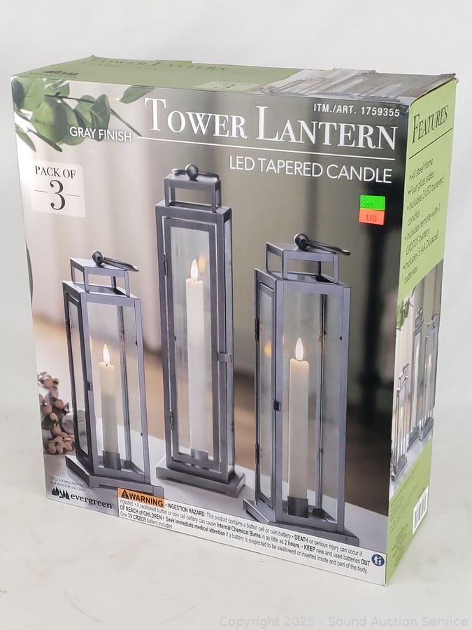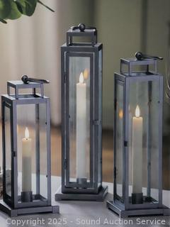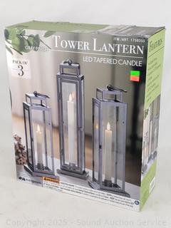 Lot #0322: 3pk LED Tapered Candle Tower Lanterns w/Remotes