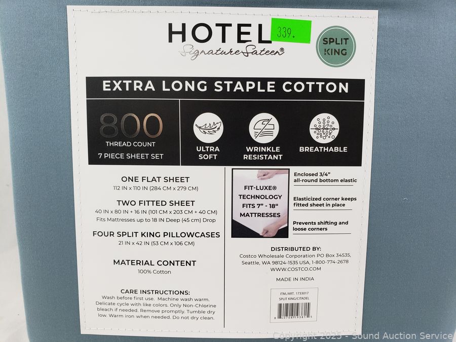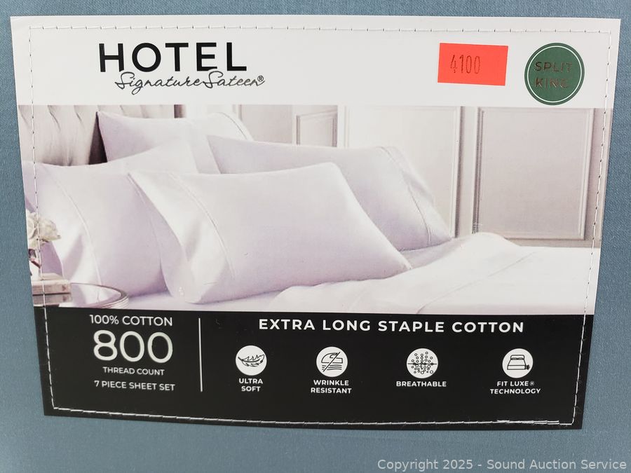 Lot #0339: 7pc Hotel Signature 800TC Cotton Split King Sheet Set