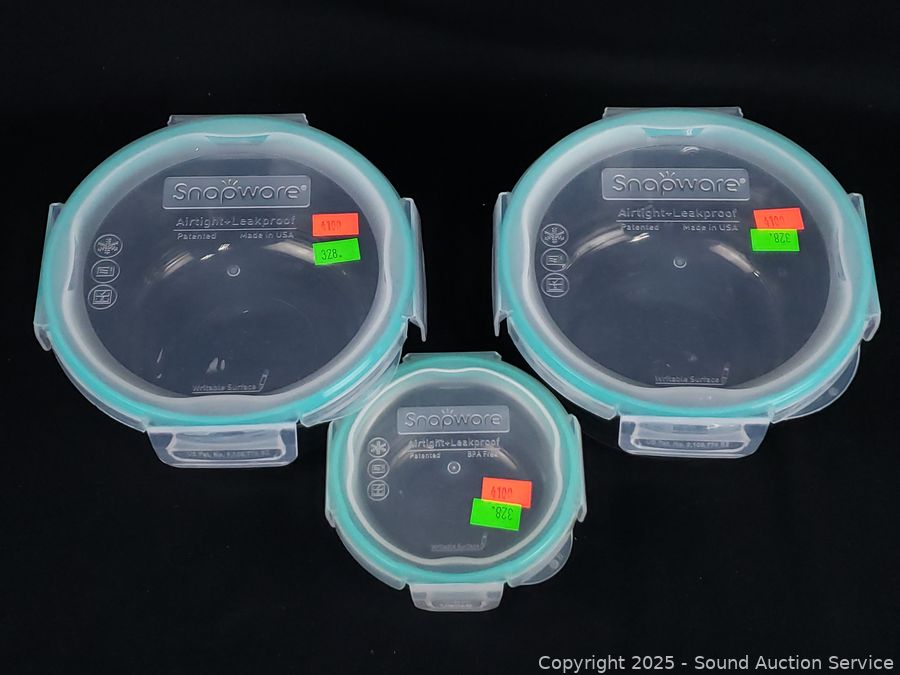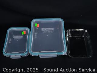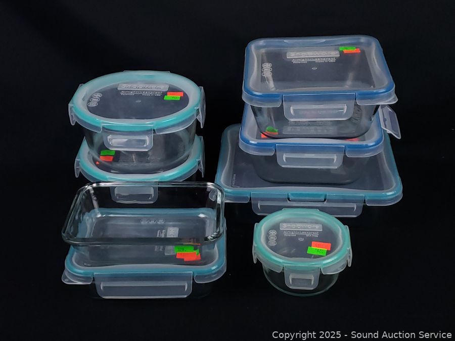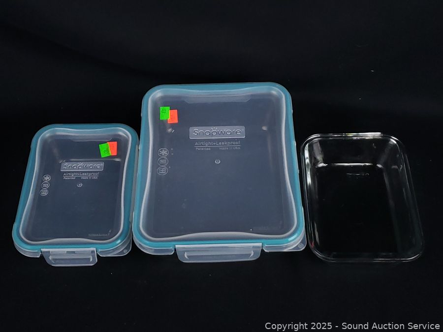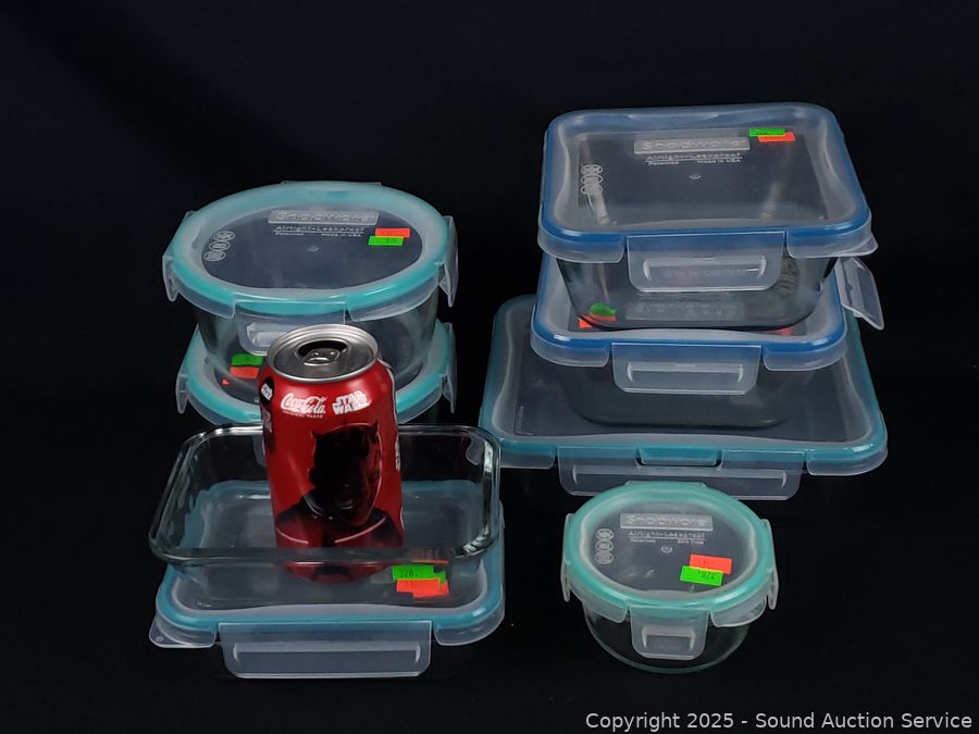Lot #0328: 8 Pyrex Glass Snapware Food Storage Containers w/7 Lids