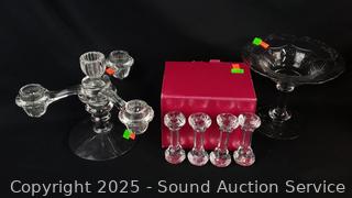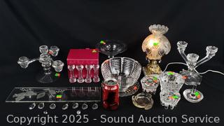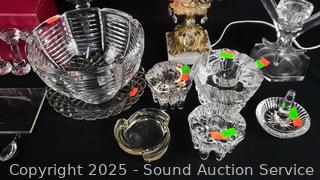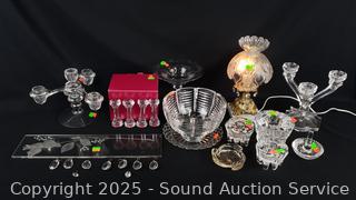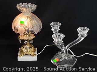 Candelabras, ring holder, compote, lamp, bowl, knife holders, candleholders, etc. Refer to photos for lot contents, more details.