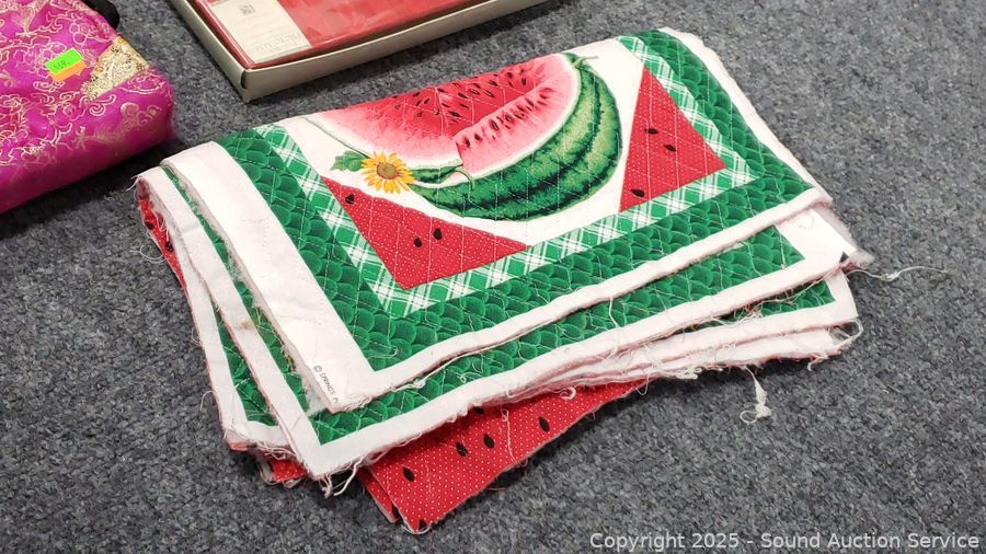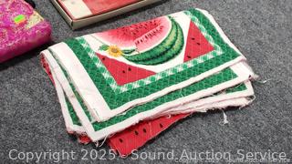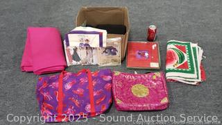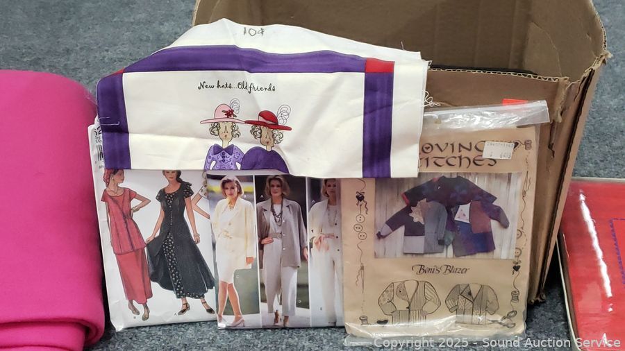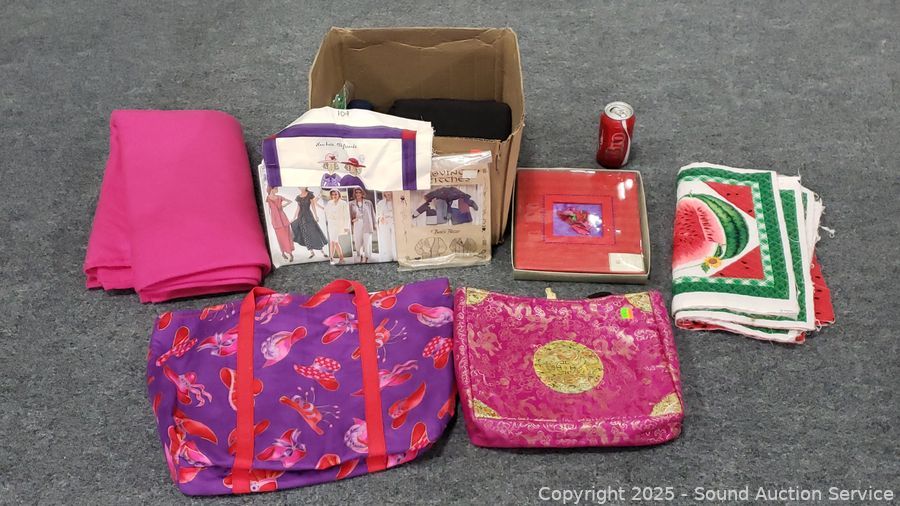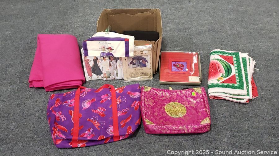 Assorted Sewing Fabrics, Bags, Patterns - Refer to photos for lot contents, more details.