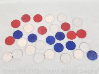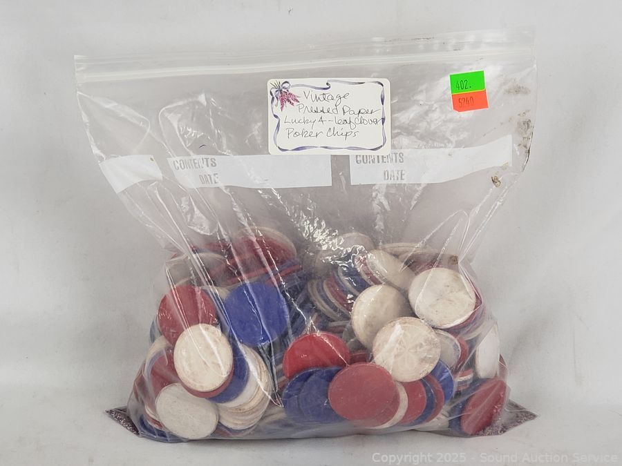 Vintage Pressed Paper Lucky 4-Leaf Clover Poker Chips - Refer to photos for more details.