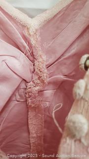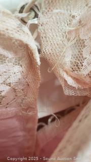 Don't see a size, looks small, approx. 24" waist. Minor snags/loose threads.