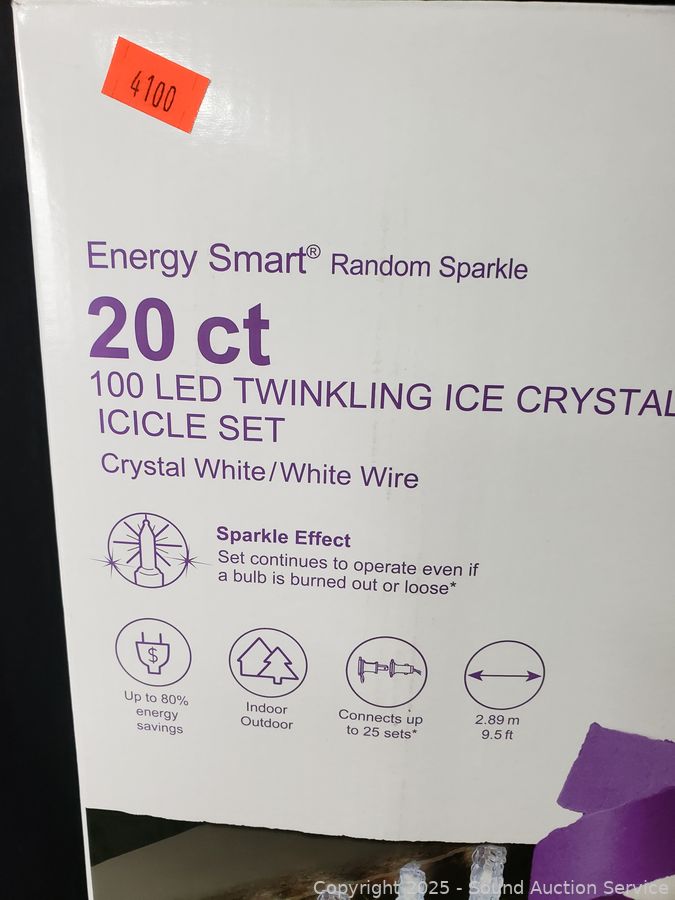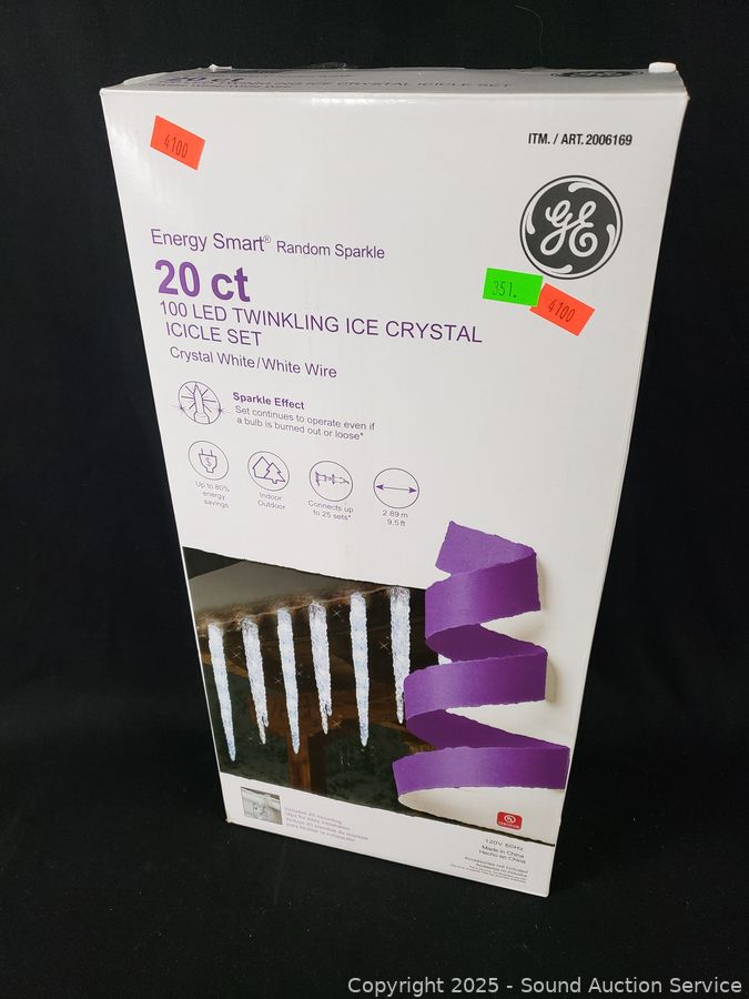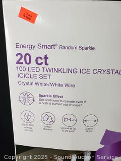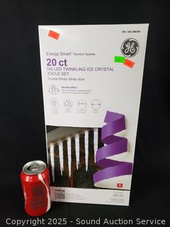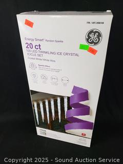 Lot #0351: GE 20ct 9.5ft 100 LED Twinkling Ice Crystal Icicle Set