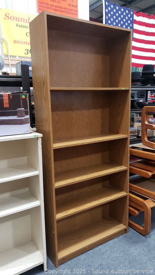 Lot #0015: Oak Finish 4-Shelf Bookcase