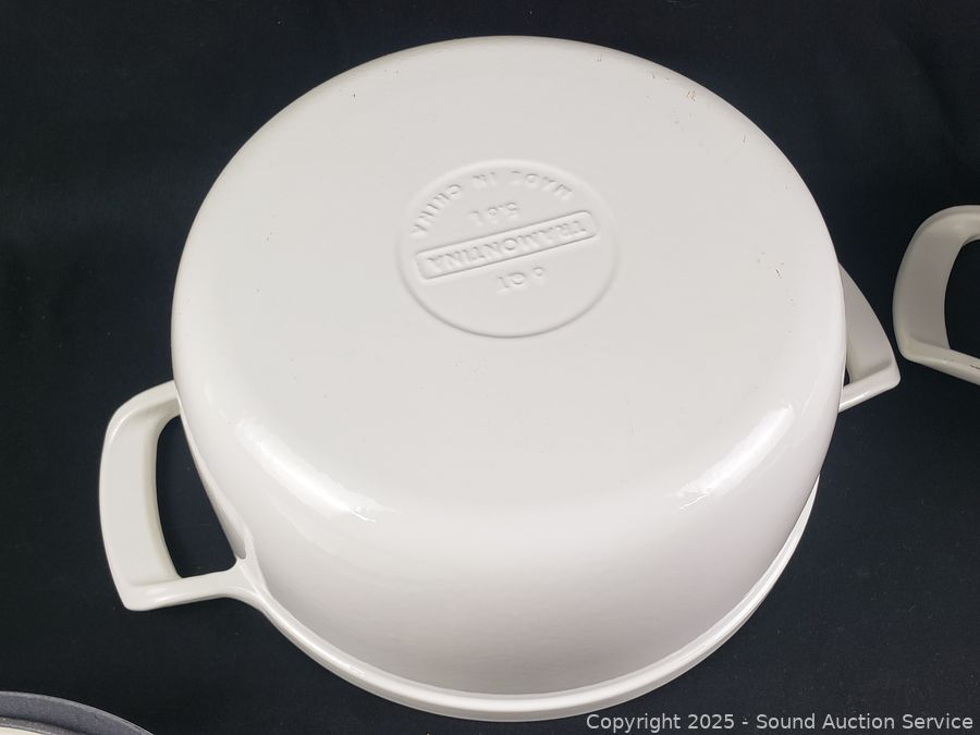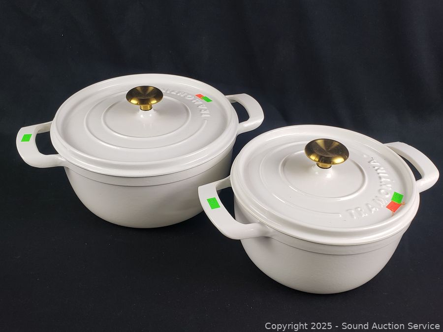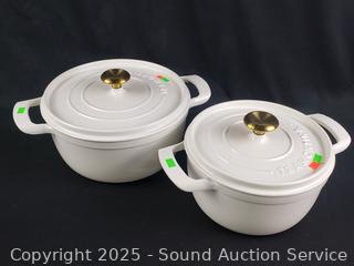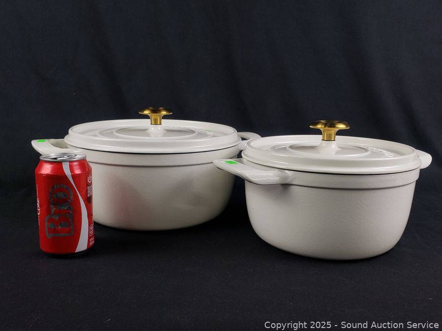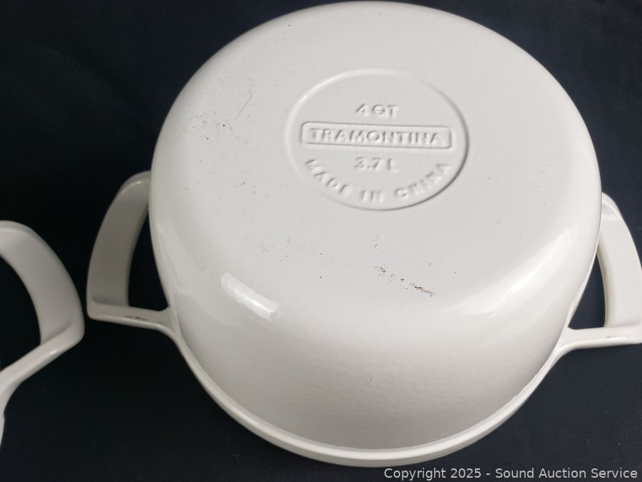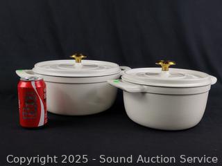 Lot #0227: Tramontina Cast-Iron Ivory Enamel 4qt & 6qt Dutch Ovens w/Lids