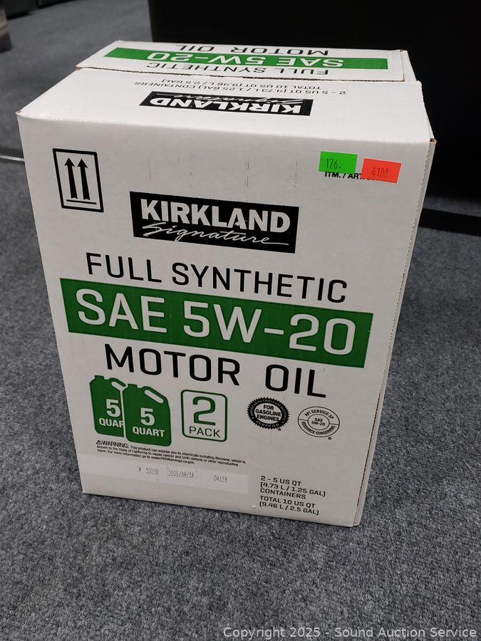Lot #0176: (2) 5qt Kirkland Full Synthetic SAE 5W-20 Motor Oil