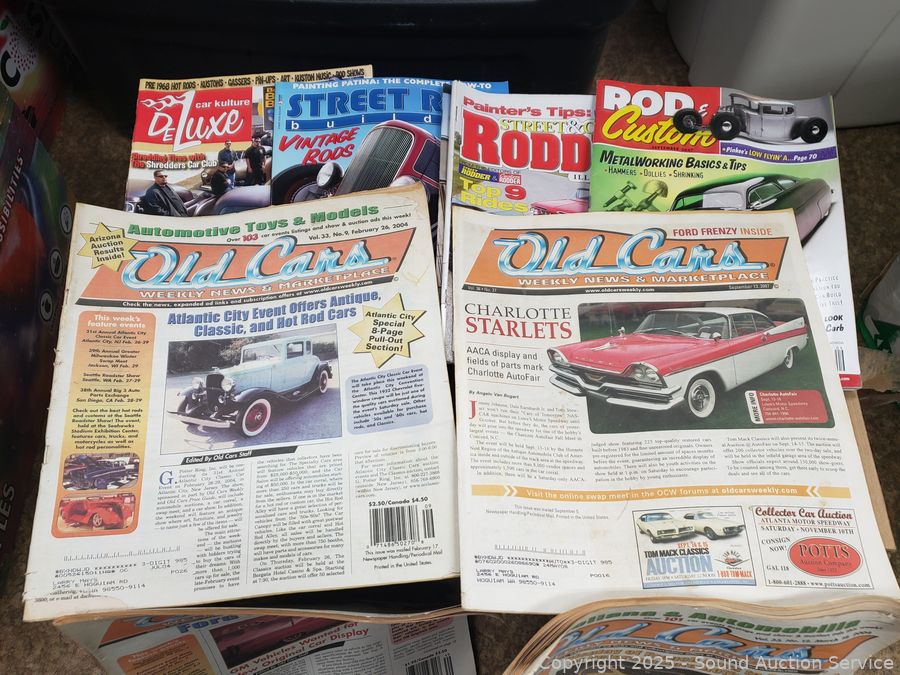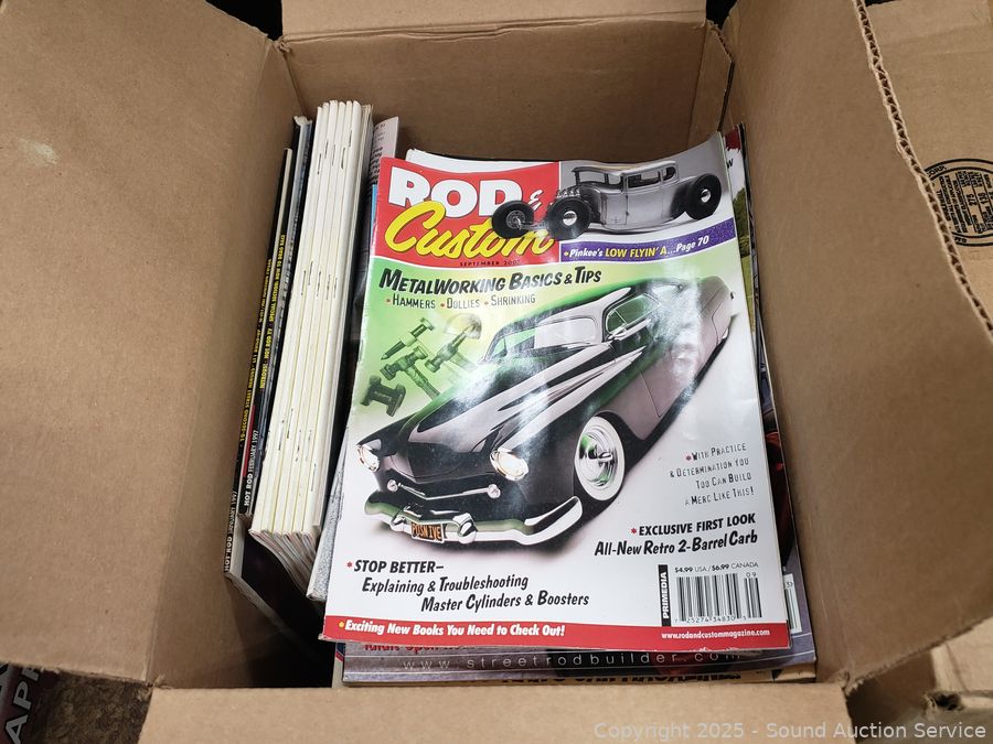 Lot #0130: 2 Boxes of Vintage Classic Cars, Hot Rods Magazines/Ephemera
