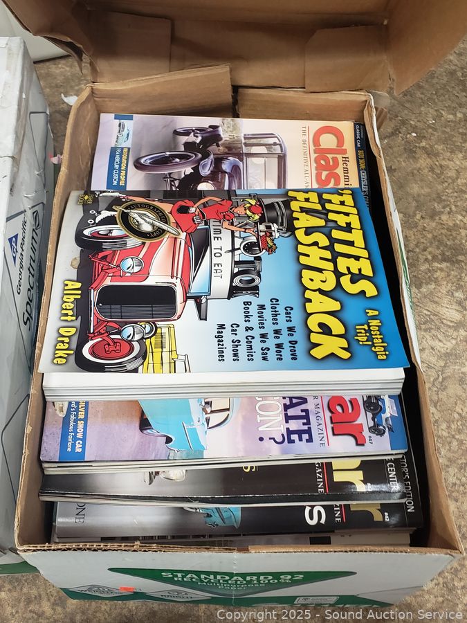 Lot #0132: 2 Boxes of Vintage Classic Cars, Hot Rods Magazines/Ephemera