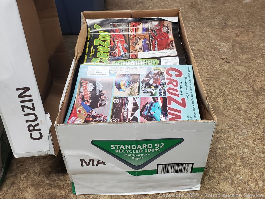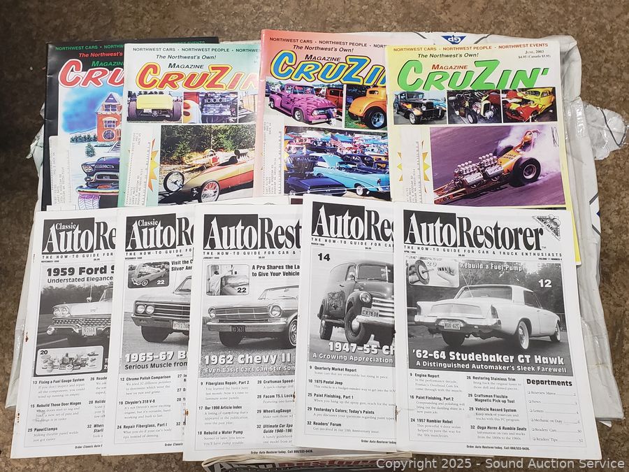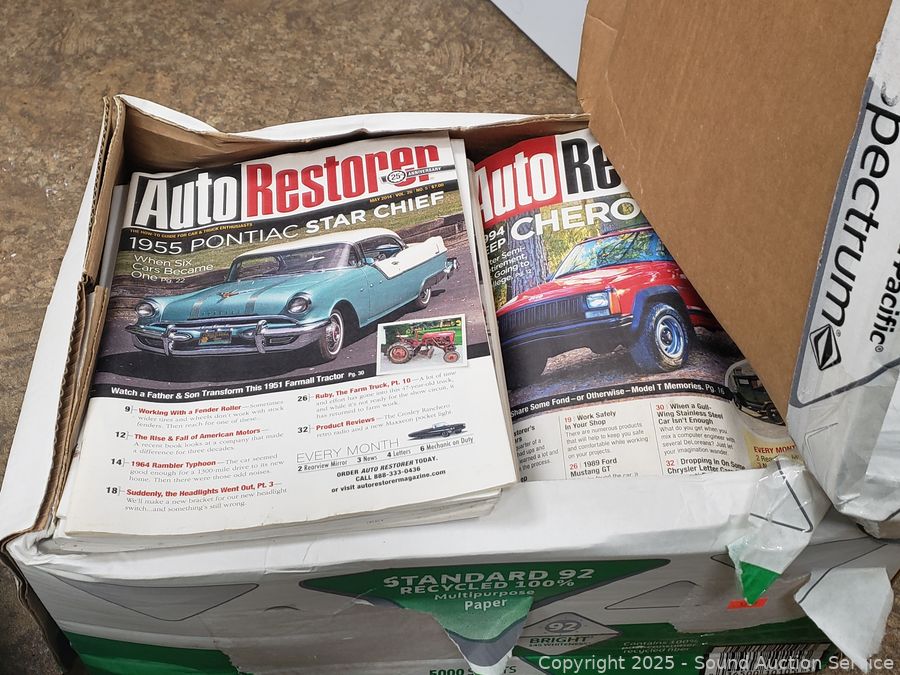 Lot #0134: 2 Boxes of Vintage Classic Cars, Hot Rods Magazines/Ephemera