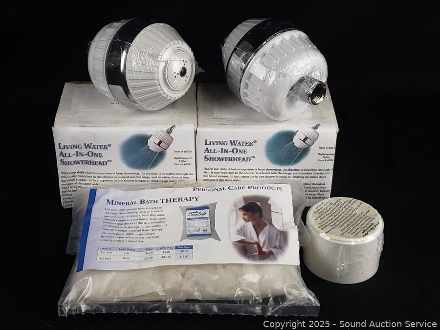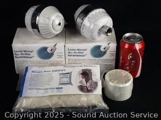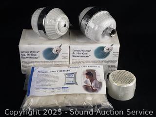 Lot #0274: 2 Living Water Shower Heads, (2) 1LB Bags of Salt, Shower Filter