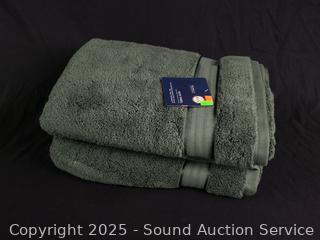 Lot #0234: 2 Purely Indulgent Green Egyptian Cotton Bath Towels