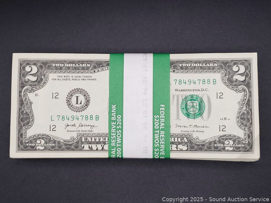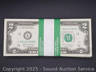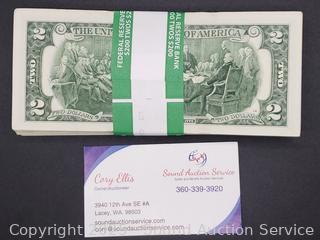 Lot #0181: $200 Unsearched $2 Bank Notes