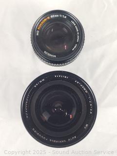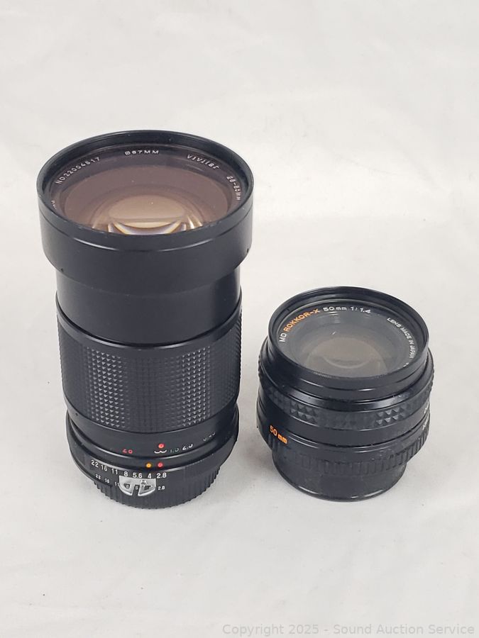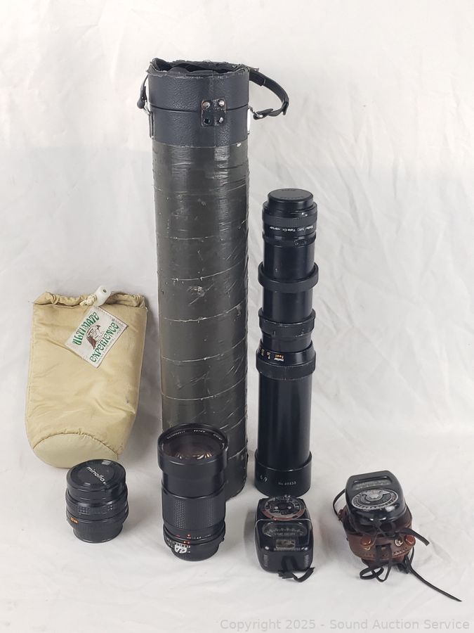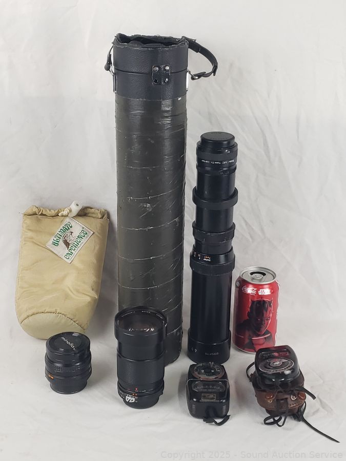 Tamron f=400mm 1:6.9 lens, Vivitar 28-85mm 1:2.8-3.8 lens, Minolta 50mm 1:1.4 lens, Sekonic & GE light meters,