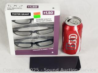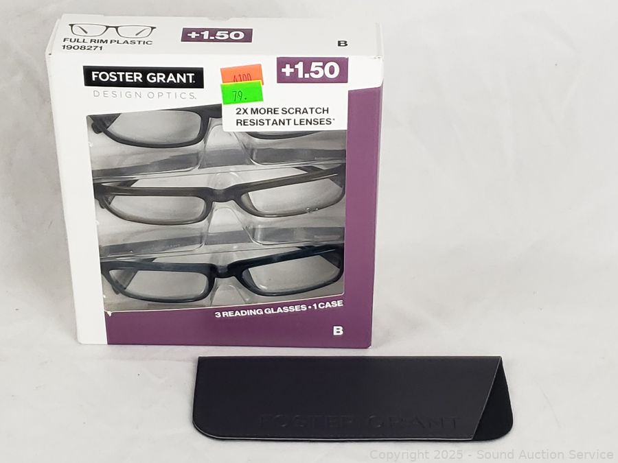Lot #0079: 3 Foster Grant Classic +1.5 Reading Glasses w/1 Case