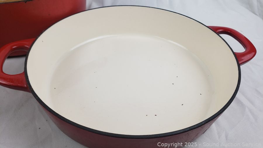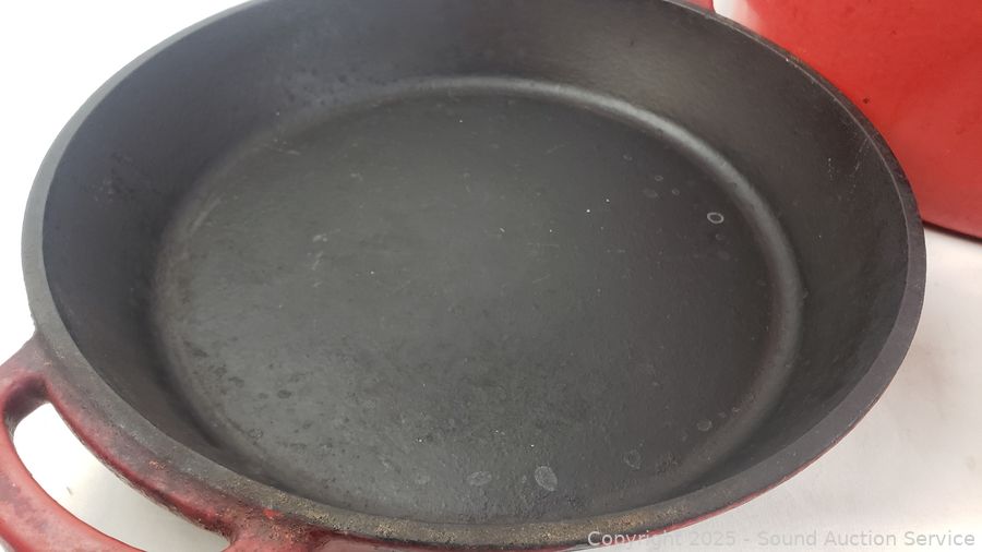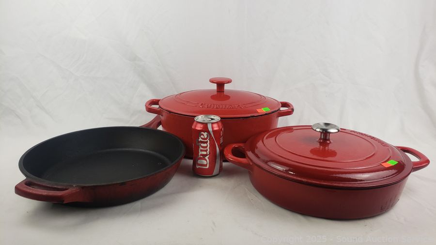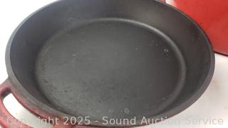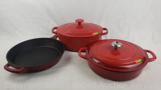 Lot #0248: 3pc Red Cast-Iron Cookware