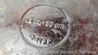 Cuisinart 12" Roaster w/Lid, Tramontina 12" frypan w/Lid, China 12" frypan. All with chips, signs of wear from use. Refer to photos for lot contents, more details.