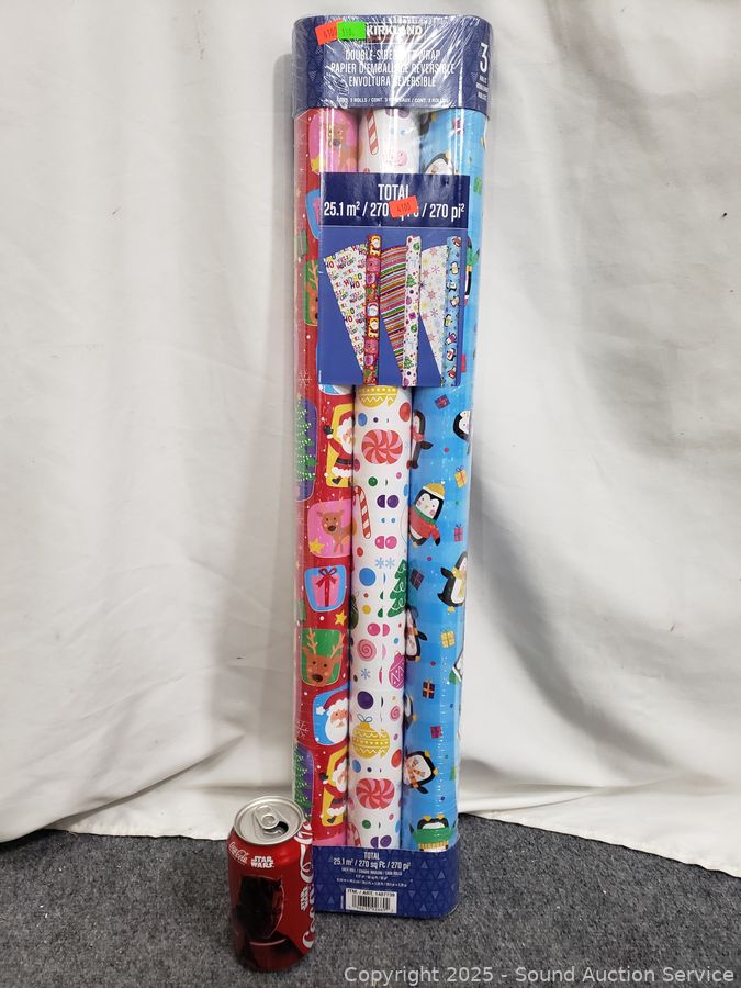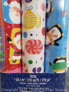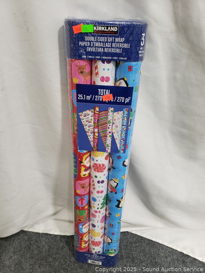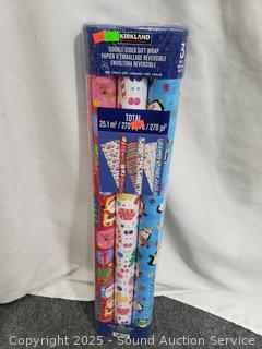 Lot #0110: 3pk Kirkland 270sq.ft. Double-Sided Gift Wrap