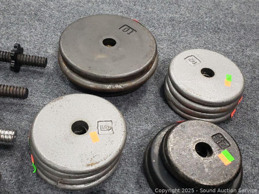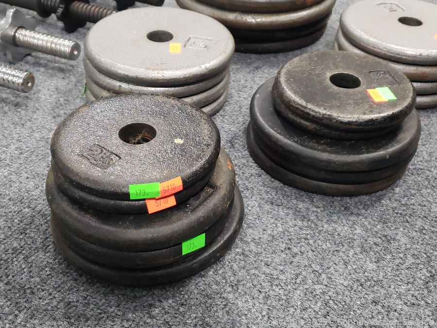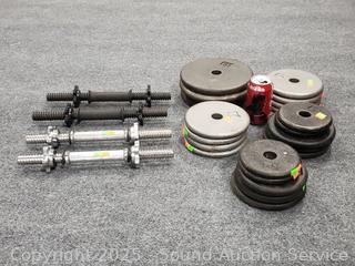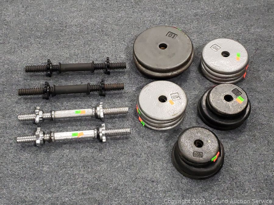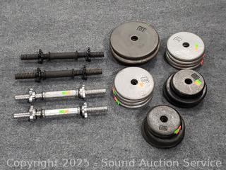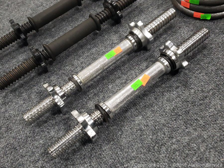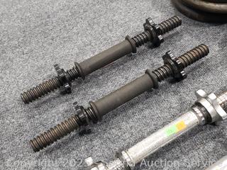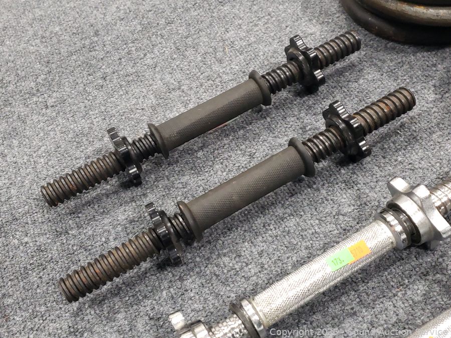 Lot #0173: 4 Dumbbell Bars w/120LB of Free-Weights