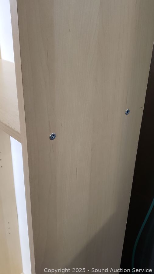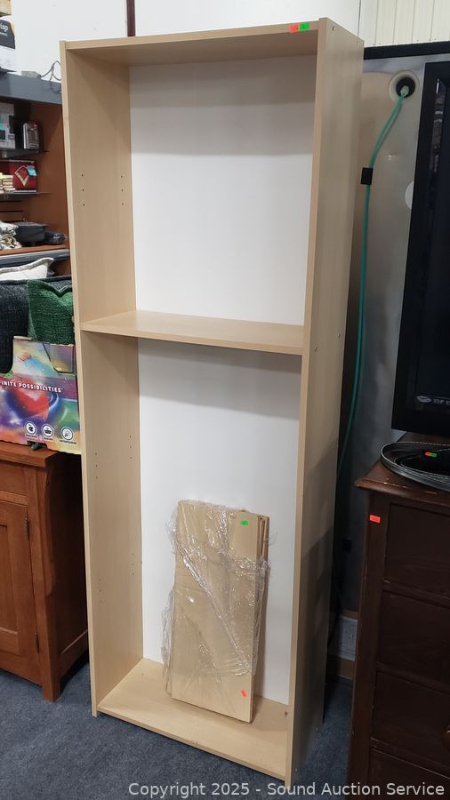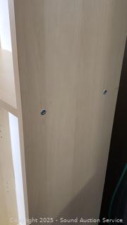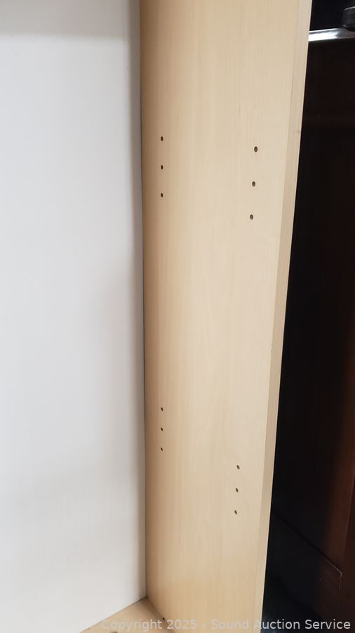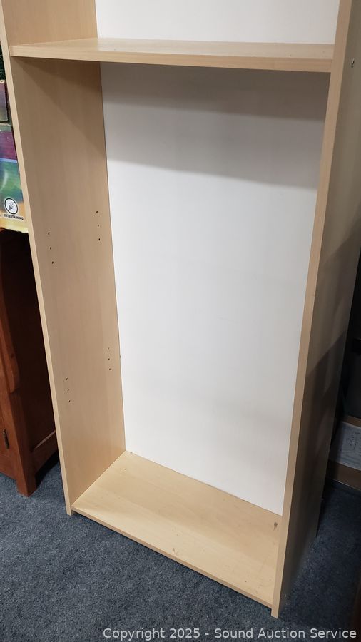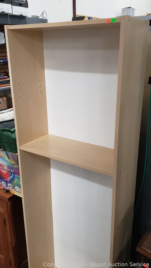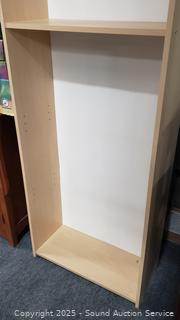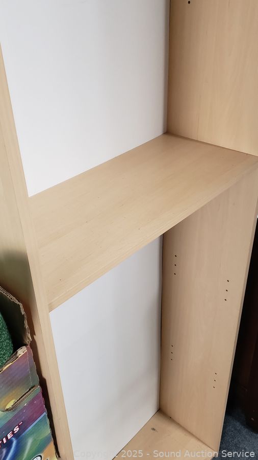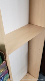 Lot #0009: 4 Shelf Simulated Wood Grain Finish Bookcase