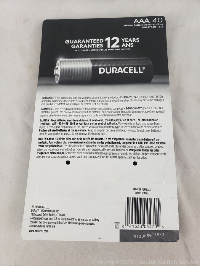Lot #0209: 40pk Duracell "AAA" Batteries