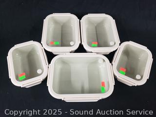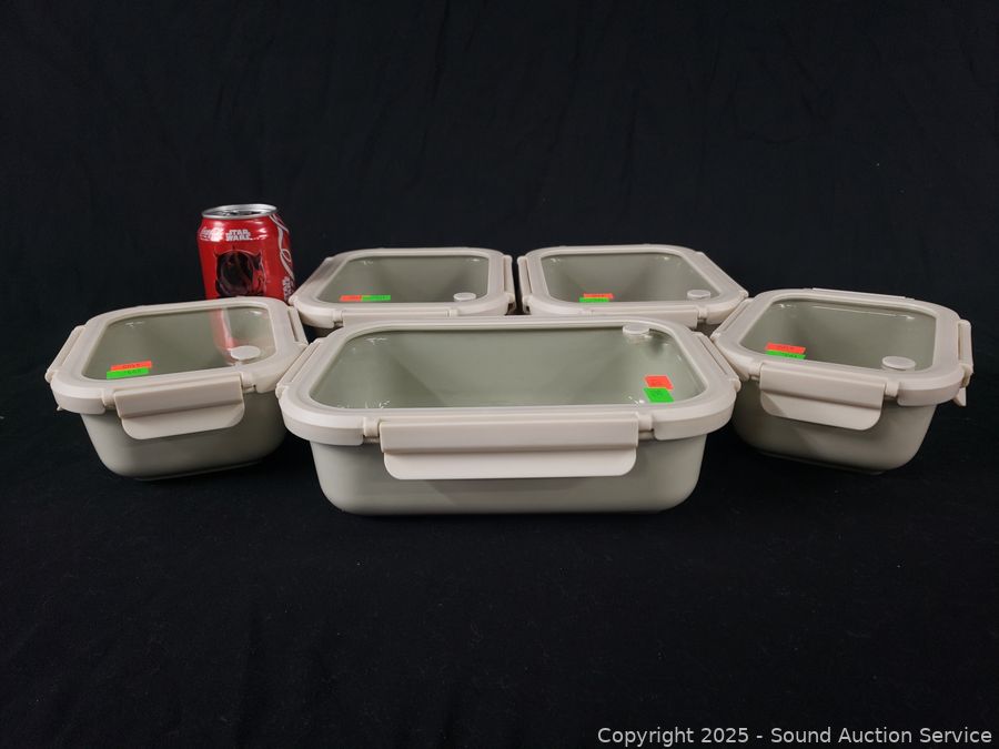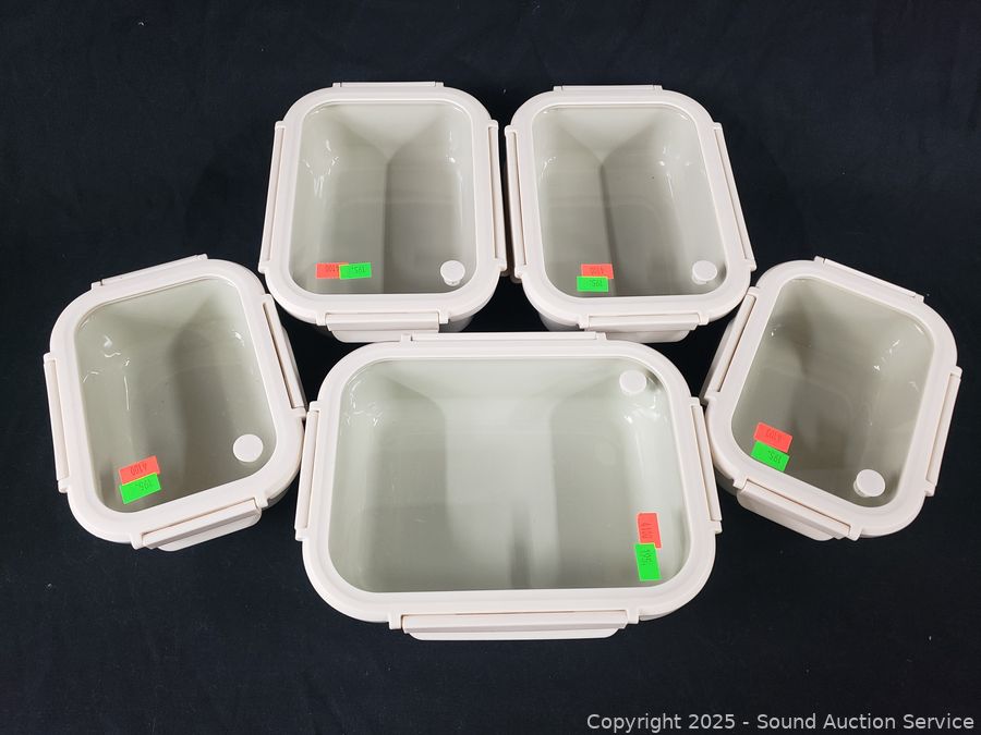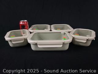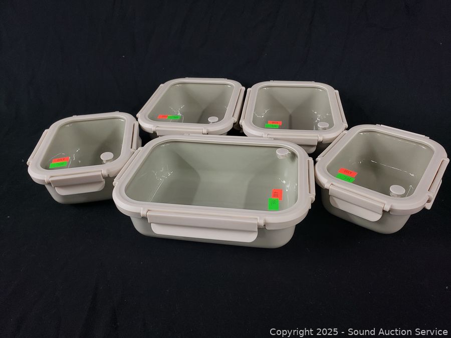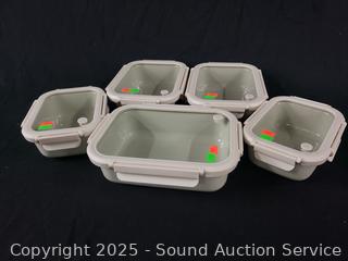 Lot #0195: 5pc Safdie & Co. Stoneware Food Storage Container w/Glass Lids