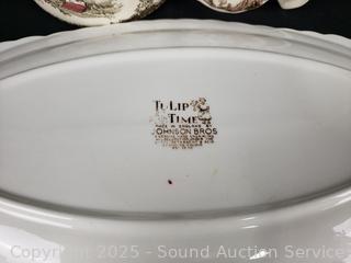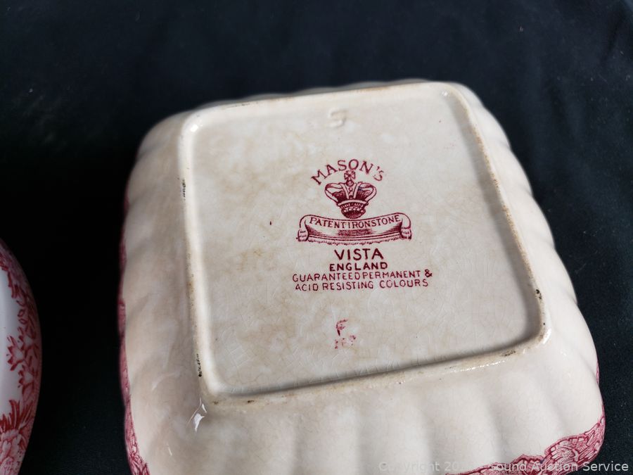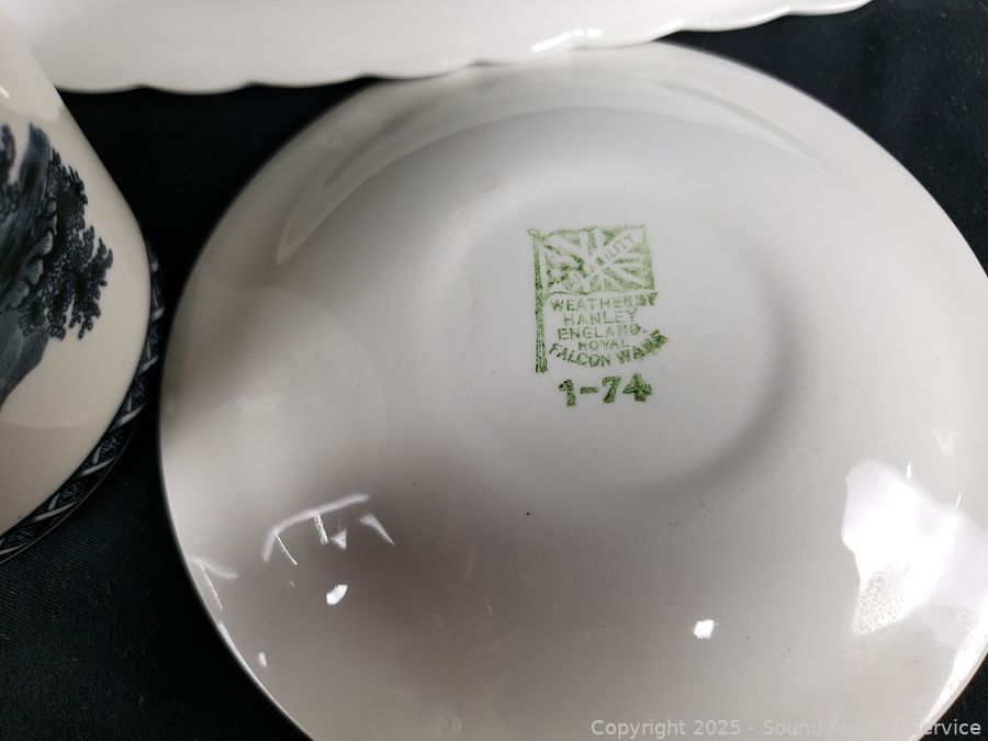 Weatherby England, Wedgwood, Alfred England, Mason's Ironstone England, Johnson Bros. England. See a few chips.