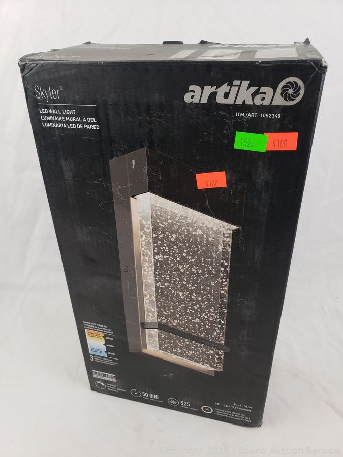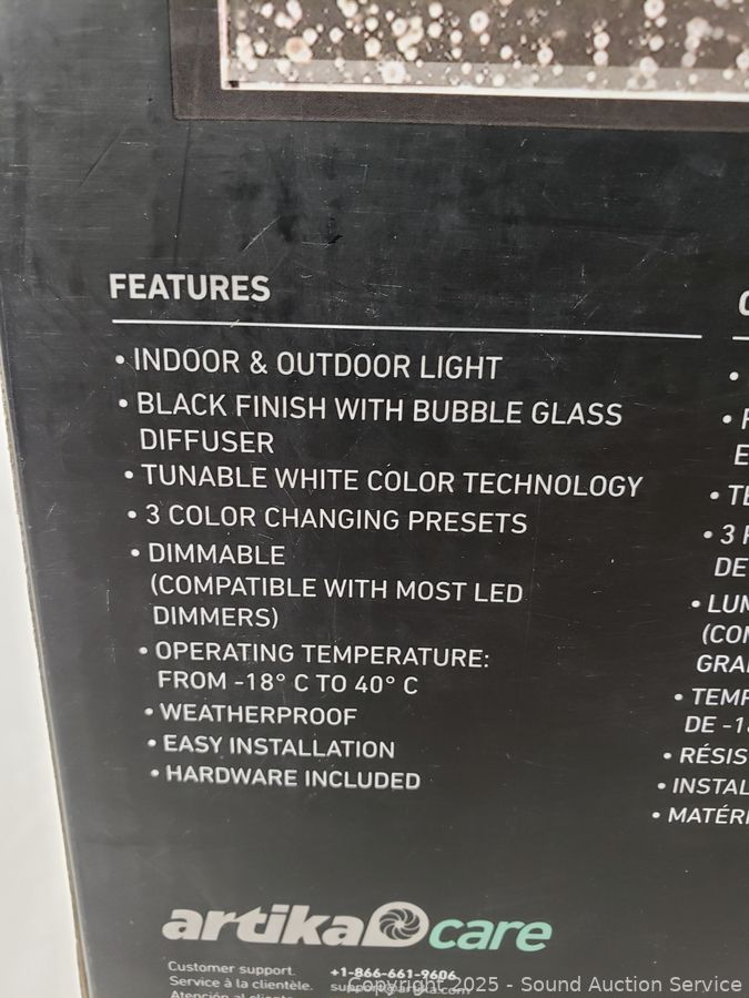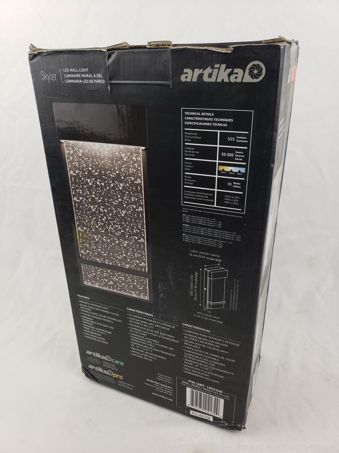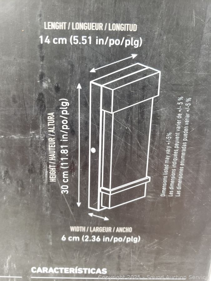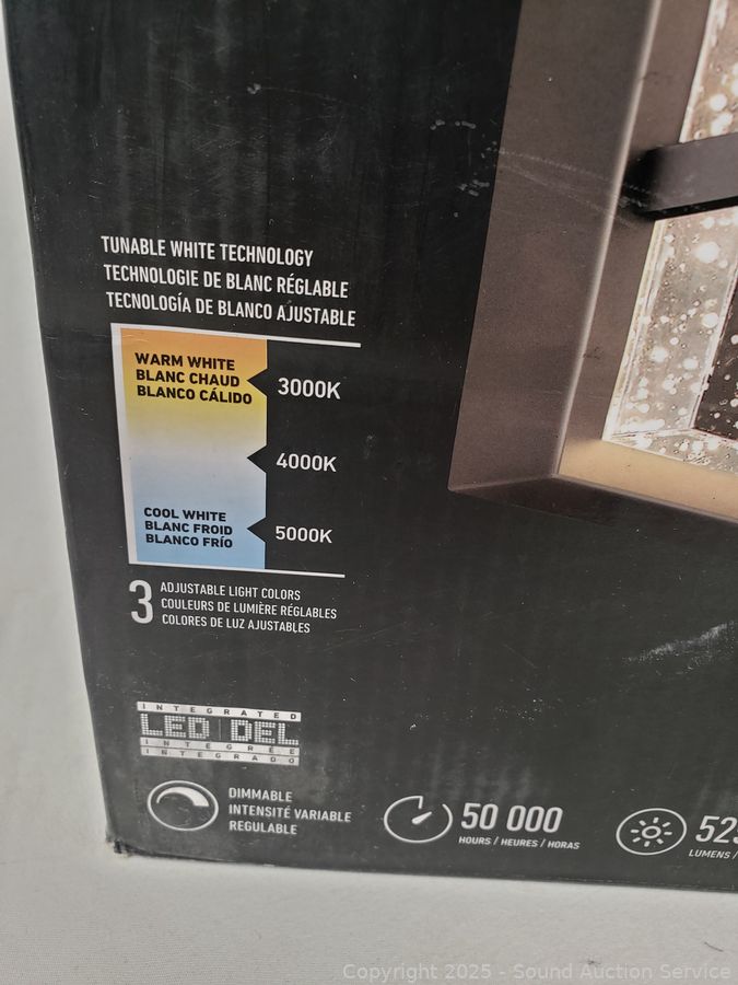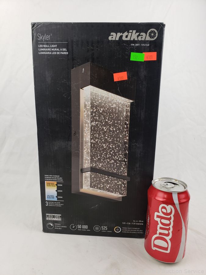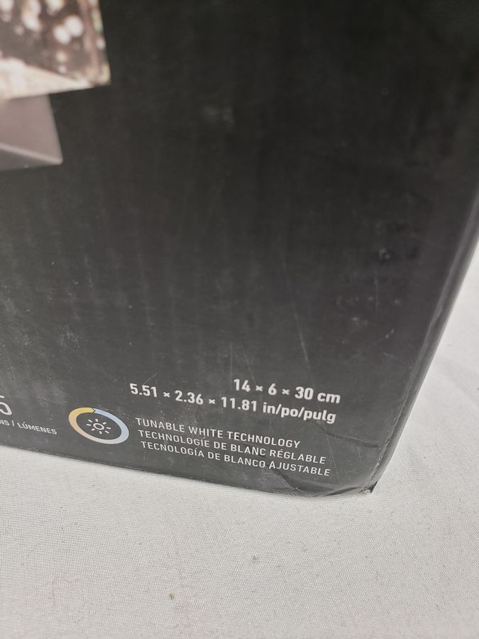 Works. Don't see any issues. Appears complete. Integrated LED's, 10W, 525LM, 3000-5000K color. 11.81" H x 5.51" W X 2.36" D.