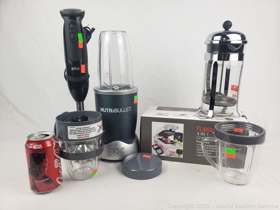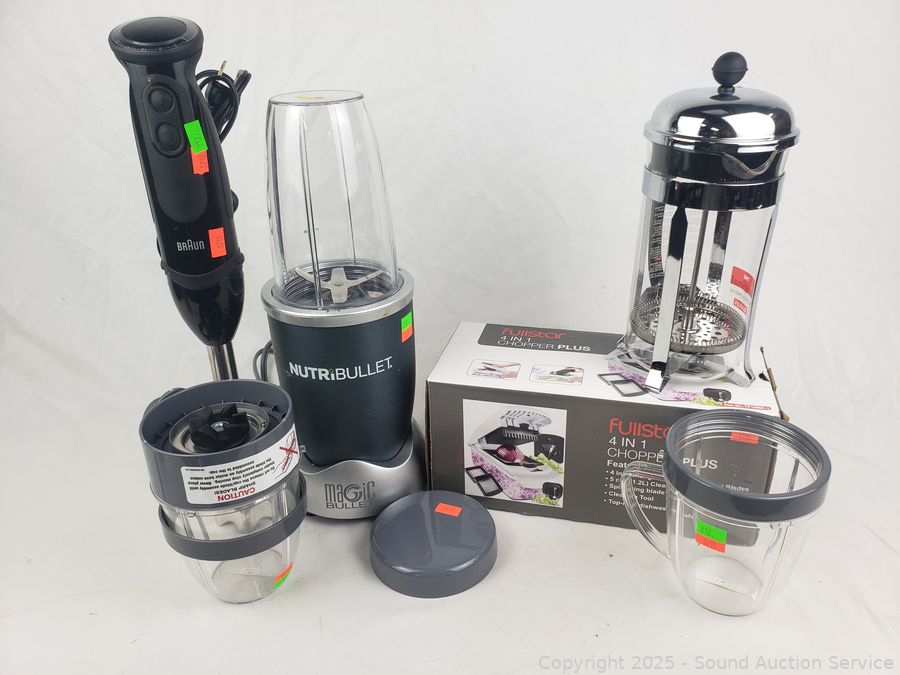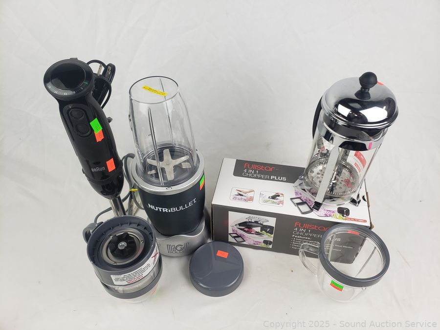 NutriBullet Blender, Braun Mixer, Bodum Coffee Press, Fullstar 4-in-1 Chopper. All in great condition, appear to be functioning as intended.
