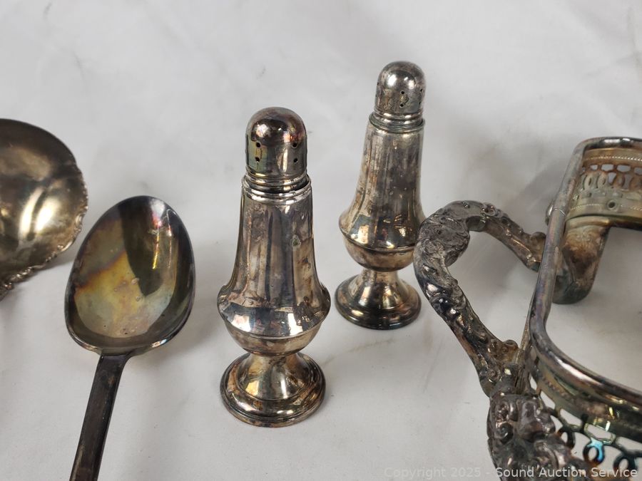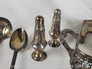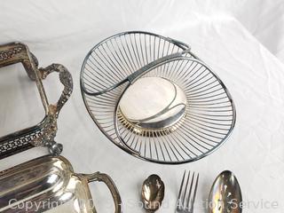 Various utensils, Newport creamer, Gorham wire basket, Avon salt/pepper, etc. Refer to photos for lot contents, more details.