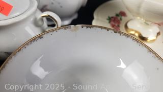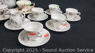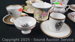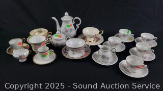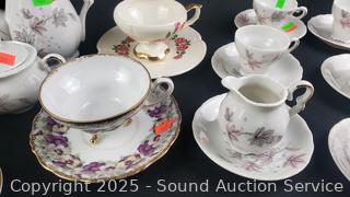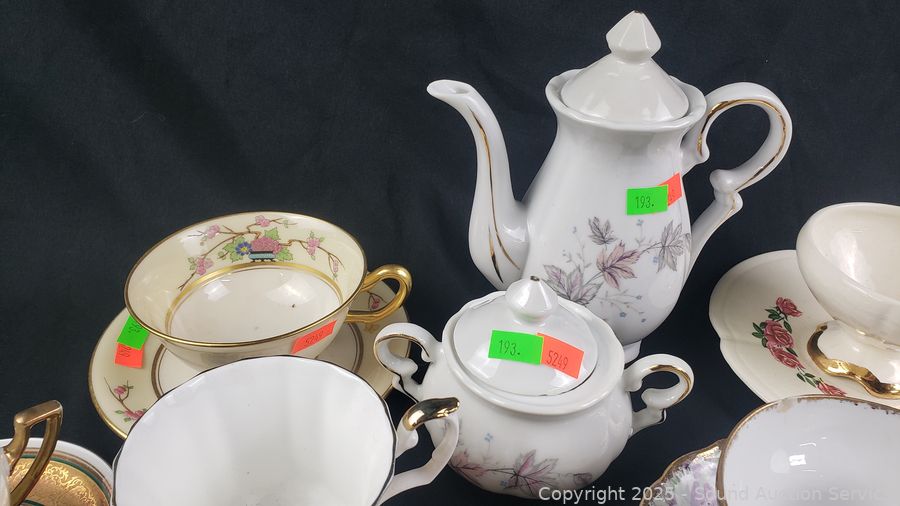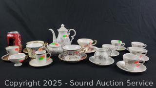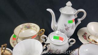 Lot #0193: Assorted Teacups, Saucers, Teapot, Cream, Sugar