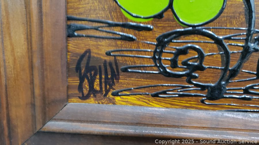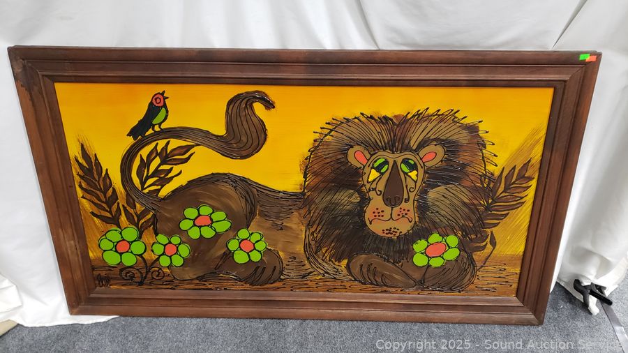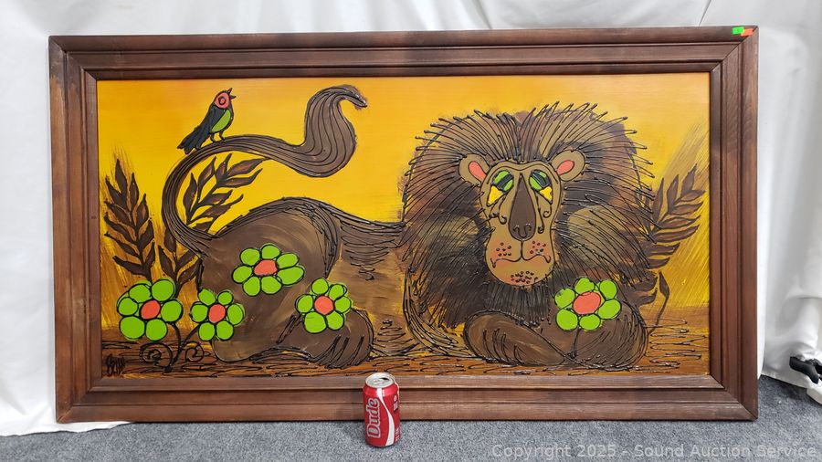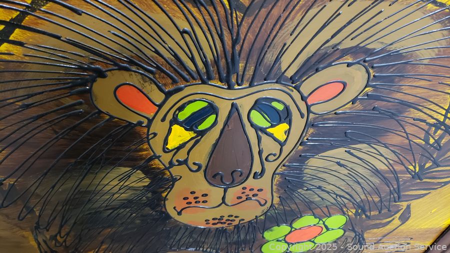 Lot #0005: Original Signed Brian Vintage Sad Lion Painting