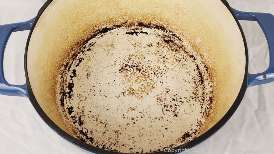 Large pot is heavily used, worn, needs a proper cleaning. Small pot is in great condition.