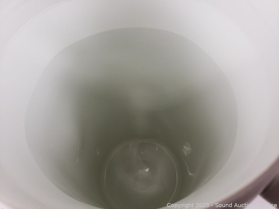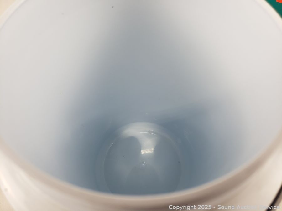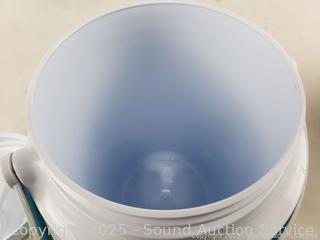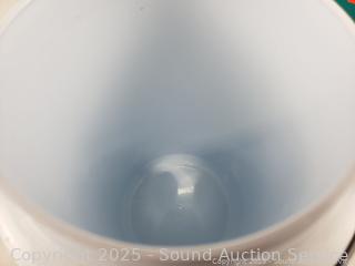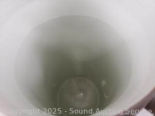 Approx. 1 gallon. 10" to 10.5" H x 5" to 6" Dia. Signs of wear from use.